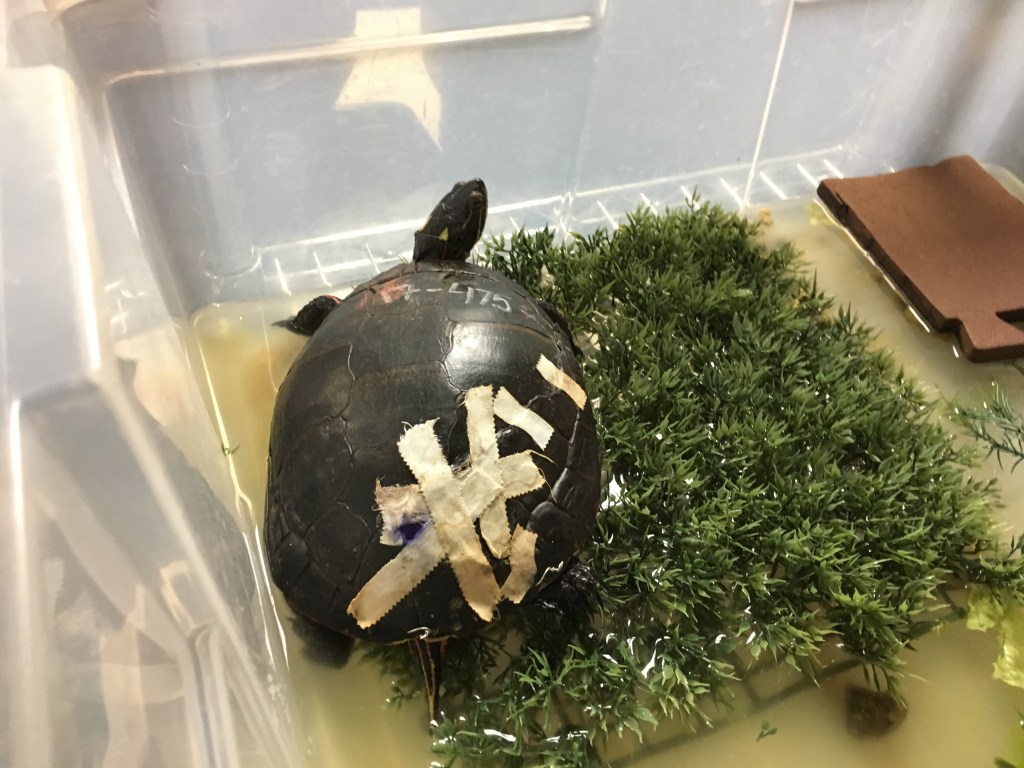 When I got there, nearly every square inch was littered with plastic bins containing recovering turtles chilling in a bit of water. The hallway was lined with them, an office containing a microscope was stuffed to the gills with turtles in bins, and even the operating room managed to fit several post-op turtles. Some were grody old snapping turtles the size of a dinner plate, and some were the much smaller (and cuter) painted turtles that are common in Ontario. Just getting around the place required a good bit of careful coordination.