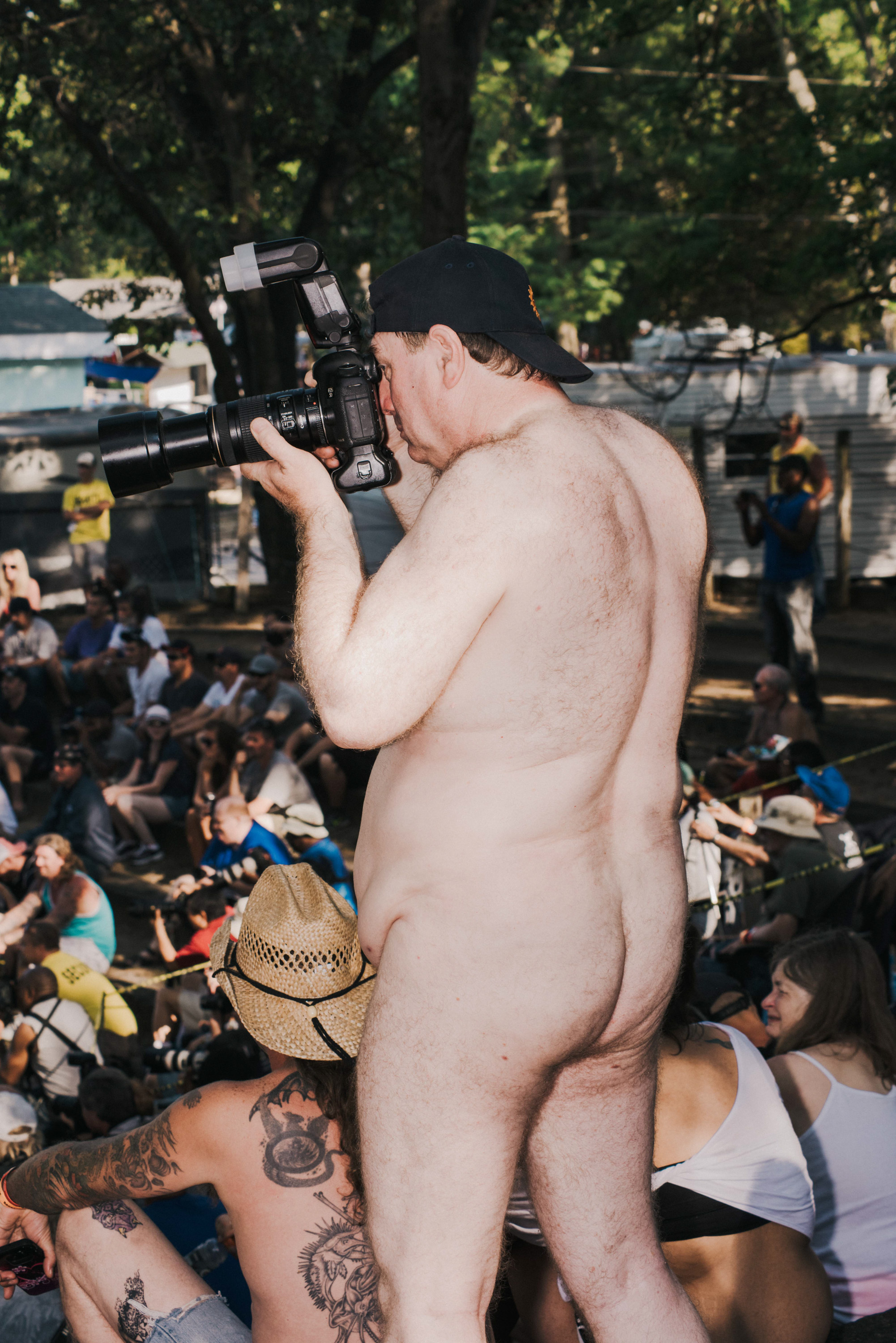 When I arrive at Nudes-a-Poppin’ (NAP) nudist pageant and festival appears like any other outdoor summer event; there are parking attendants, ticket takers, and Rihanna’s latest hit playing in the distance. However, it’s the comments and catcalls I receive as I walk through the crowd that make it clear the festival is not your typical gathering. I’m frequently stopped by men who ask to take their picture with me; after I agree, many wrap their arms around my chest and try to lift up my shirt like some sort of 7th grade movie theater date move. I’m also bombarded by questions: “Shouldn’t you be on the other side of the camera?” and “What time is your performance?” and “I showed you mine, can you show me yours?”
