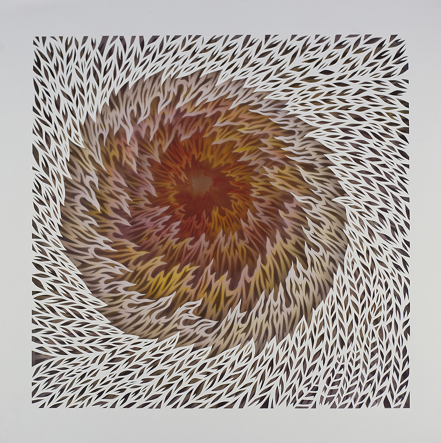 Netted layers of paper cut into spindly bows frame a never-ending hole which opens up to another world. What began in Elisa Mearelli‘s Italian city as tradition turned into a studied interest in the art of paper-making. Her tiny paper works take the material of paper seriously. Paper represents a special language for Mearelli to communicate her psychological uncertainty and confusion.
