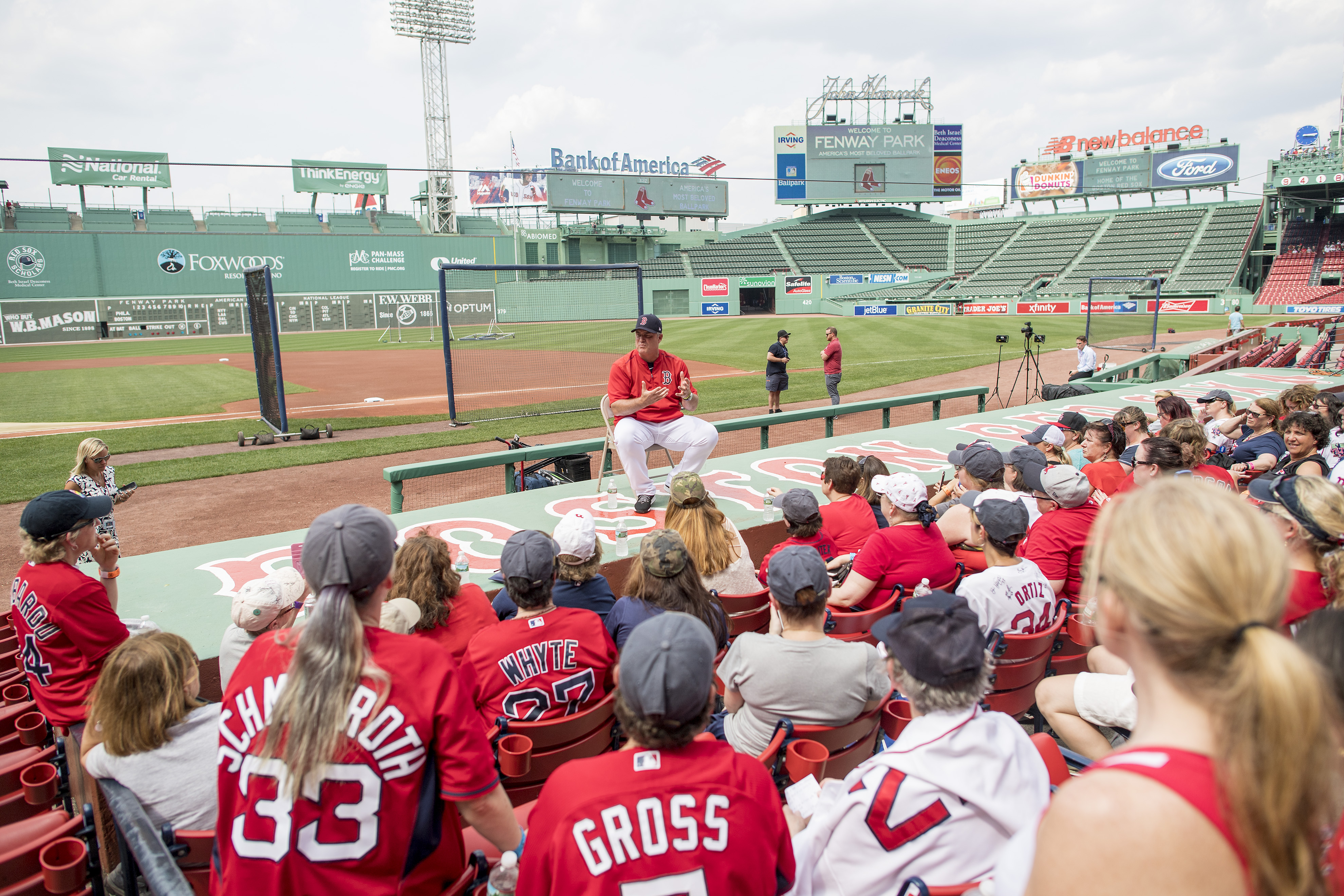 Myers, 51, is one of 57 attendees at the Red Sox’s third annual “Girls of Summer” event—an all-day affair that consists of a baseball clinic with Red Sox coaches Ruben Amaro Jr., Brian Butterfield, Carl Willis, and Victor Rodriguez in the morning, followed by a panel with six front office members, a Q&A with a players Brock Holt and Robby Scott, a gab session with manager John Farrell, and a ballpark tour, all capped off with tickets to the game that night.