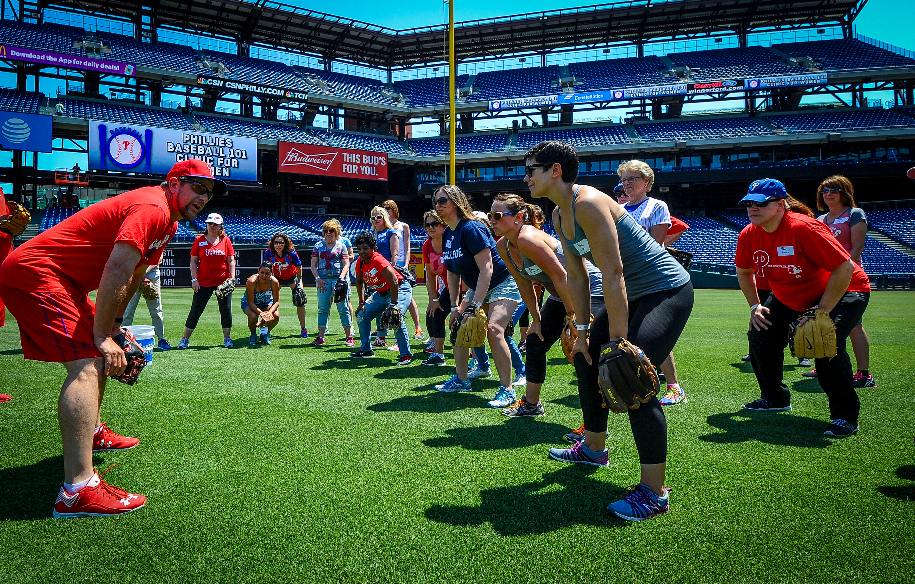 The event gives women “the chance to be a major leaguer for the day,” says Mary Ann Moyer, the Phillies’ Director of Community Initiatives. Like the Round Rock event, “Baseball 101” was the brainchild of women in the Phillies front office who wanted to give other women an opportunity to go behind-the-scenes with the team.