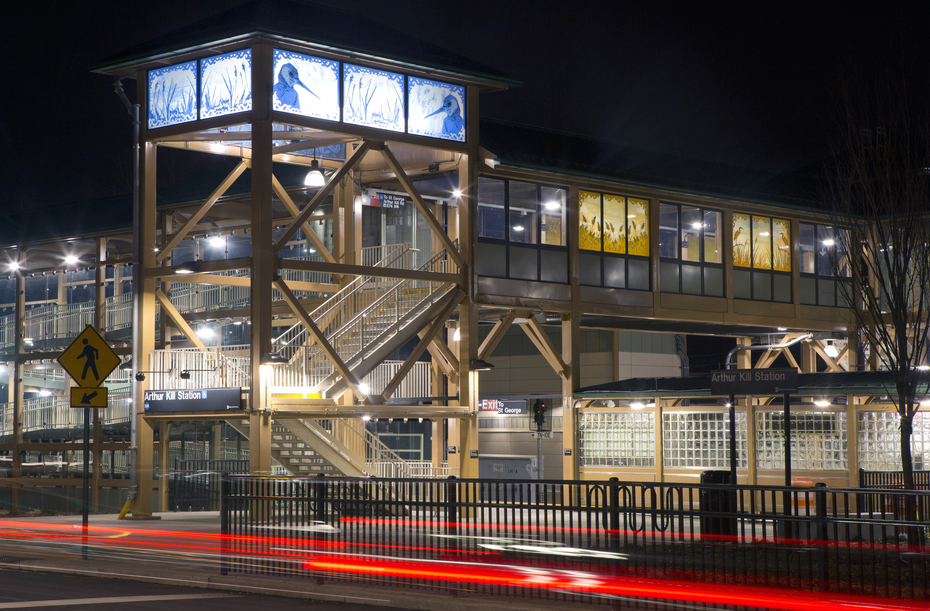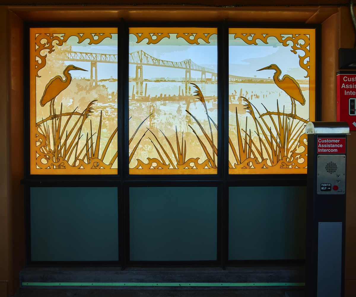 Tottenville Sun, Tottenville Sky (2017) © Jenna Lucente. MTA Staten Island Railway Arthur Kill station. Commissioned by MTA Art & Design. Photo: Michael Falco.