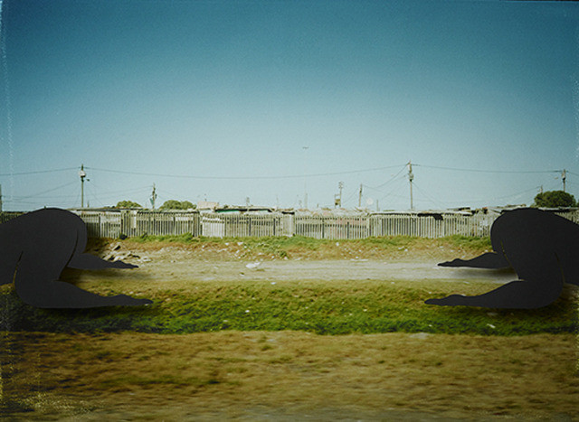 Bemo: We allowed a lot of time for the creative process and in the early stages. We spoke a lot about making something ambiguous and annoying in a subtle way. At a first glance, they look like normal photos, but then, when you look closer, things don’t seem to be right. We made the collages together, and I painted the characters in Jens’s photos. I like the contrast that comes about putting [the characters] in real environments.