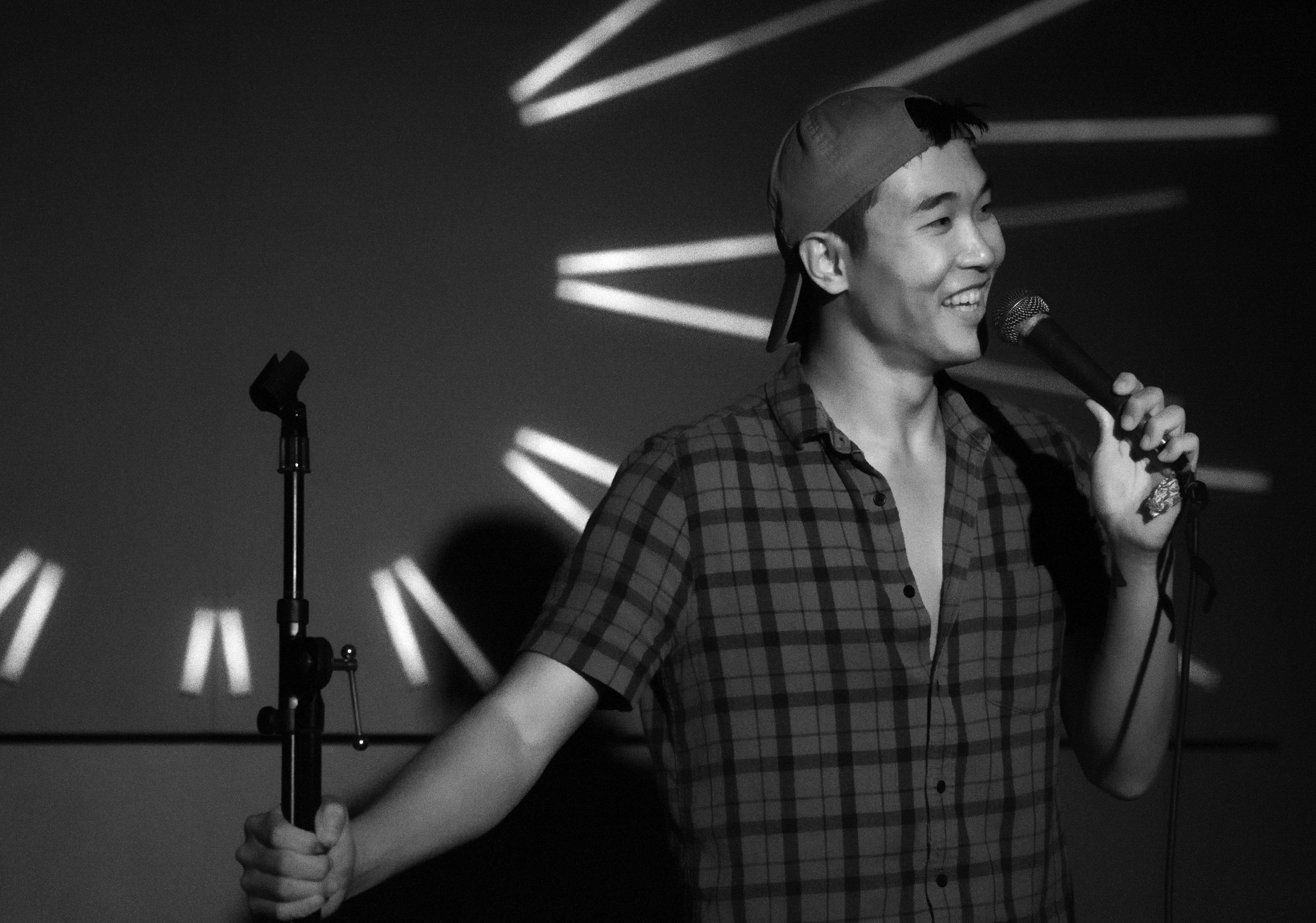 “Today I accidentally pulled my dick out a couple steps too soon before I made it to the urinal, and this other guy who works in the office with me full-on saw my penis and it was a horrible moment for both of us,” says comedian Joel Kim Booster. His dark black hair peeks out from the top of a backwards baseball cap, and he looks at me from behind dark eyes and chiseled cheekbones, wearing ripped jeans with a short-sleeve red flannel shirt. Sometimes there’s a guy who’s so excited to pee, he laughs, “he couldn’t even wait until he got to the urinal to do it”—and this time it was him.