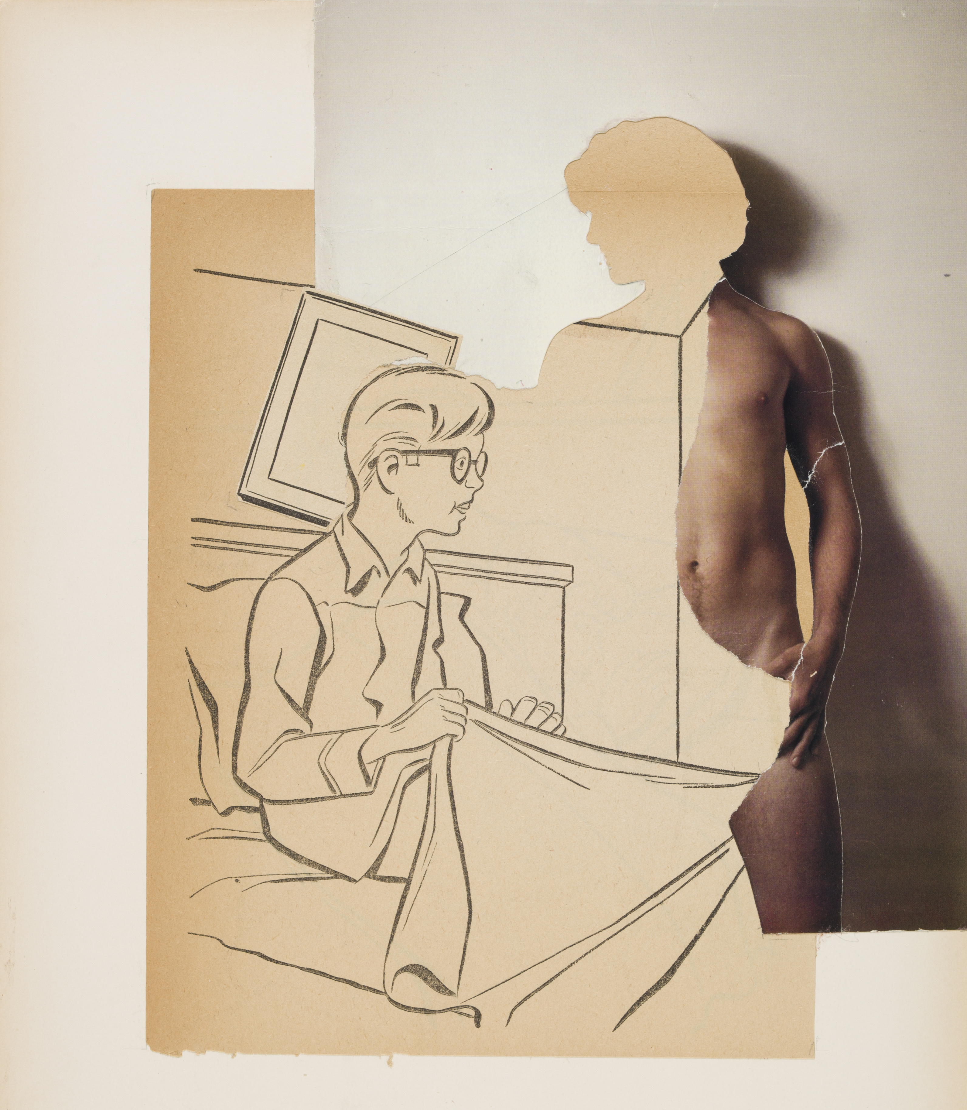 His collage often incorporates nude self portraits in the form of Polaroid photographs, as well as cutouts of pornography, and images that reference artists that have come to influence his work over the years. Through his practice, O’Reilly is able to reflect on his own personal narrative within the context of a larger cultural world history. He addresses issues of homosexuality as an often repressed community while reflecting on his own experiences growing up as a closeted gay man in a Catholic household. Some of his more recent works incorporate old coloring books that reference his childhood, exploring his own feelings about morality and the isolation and anxiety he felt growing up.