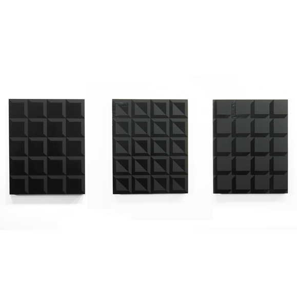 Vincent Como, History of Painting - Installation View, 2006, Gouache and ink on paper, Dimensions variable, Drawings 11 x 8.5 inches, 15 x 12.25 inches framed. Images viaVincent Como is a Brooklyn-based visual artist who works in what he calls his "Black Laboratory." Deeply rooted in Minimalism, Conceptualism, and Color Field Painting, Como states on his website that, "Black is the pure and unrepentant mark of information. […] In applying my research and interest for the history and traditions of Color Theory, Physics, Alchemy, Heavy Metal, Religion and Mythology I am working toward a comprehensive understanding of the interrelation of Black, Darkness, and Matter." Click here to check out his Studio Visit page on MoMA PS1.