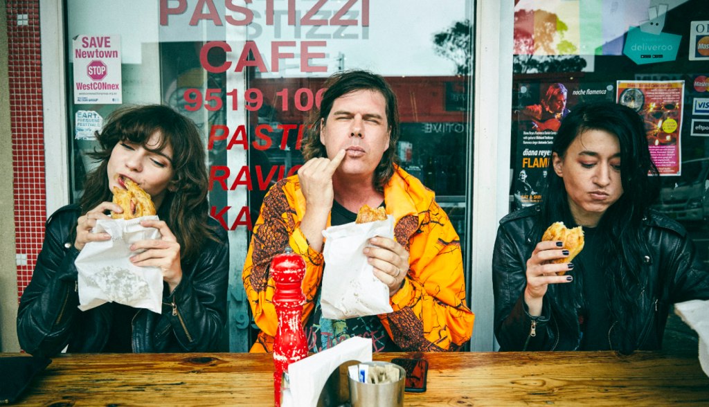 Angus Andrew who is LIARS, recently returned to Australia after living in Berlin. He settled in remote NSW to record TFCF, his eighth studio album. But when back in the big smoke recently he hooked up with kraut-pop duo MEZKO. Kat and Laura cite Angus and LIARS to be a big influence in their sound and so were happy to show the big guy around the streets of Newtown.