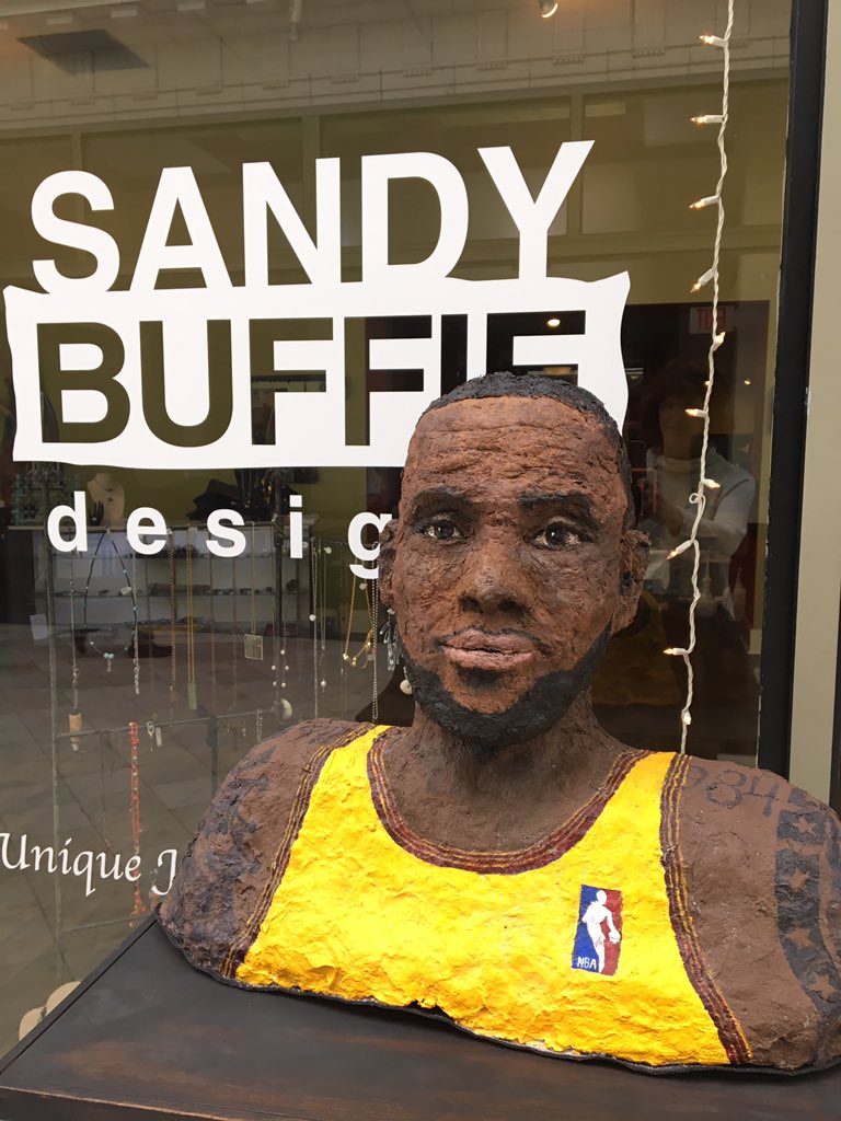 For most people, dryer lint is an annoyance. Not for Sandy Buffie, who uses lint as a material for “found object” sculptures, like that of the Lebron James bust that earned her a degree of fame last year. Seeing as how James and the Cavaliers are back in the NBA championship for the third year in a row against the Golden State Warriors—and not doing too well, either—Buffie decided to break the lint sculpture back out. The 30-pound lint bust is as strange and interesting as ever, and further proof that the art world has an interesting fetish for basketball.
