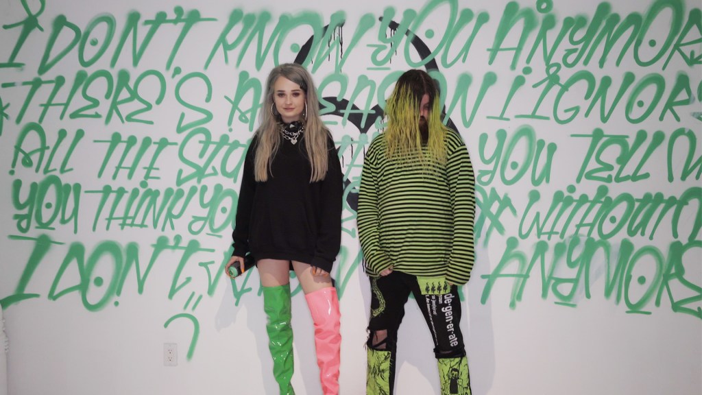 Today, Aaron and Petras are sharing a video for the track that mostly seems to celebrate their easy interplay. Directed by Lewis Grant—who, it should be noted, also makes his own wonderfully colorful music—it features the pair lip-syncing in colorful outfits in colorful locales, demonstrating, most of all their chemistry and genuine affection for one another. It’s an effortless visual, but it goes along nicely with the “fuck off” quality of the song’s chorus, a reminder that even when you cut off dead weight from your life you’re still going to have friends at your side to celebrate in the aftermath.