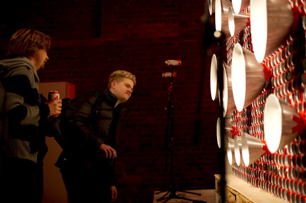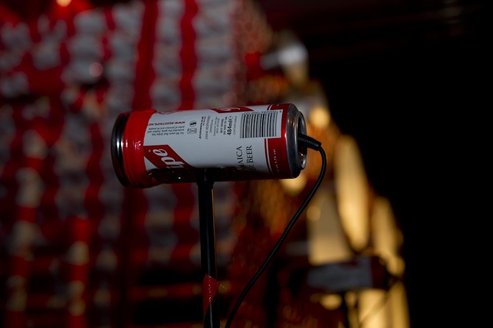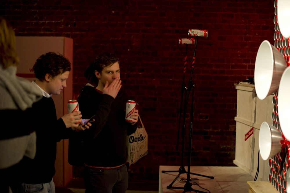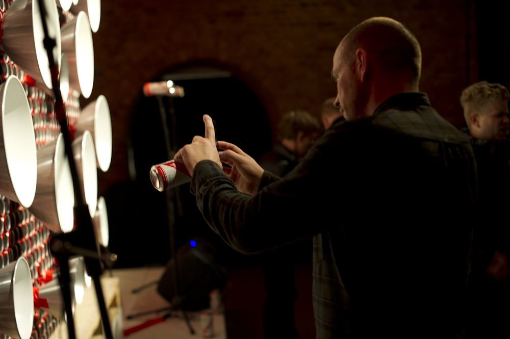 For the first project of the ‘Make with a Red Stripe’ series, sound artist Yuri Suzuki made a sound sculpture using what seems to have been half of Red Stripe’s November supply of beer cans. The other half were just used as fuel for the crowd that gathered at Village Underground to admire the art, on Wednesday.