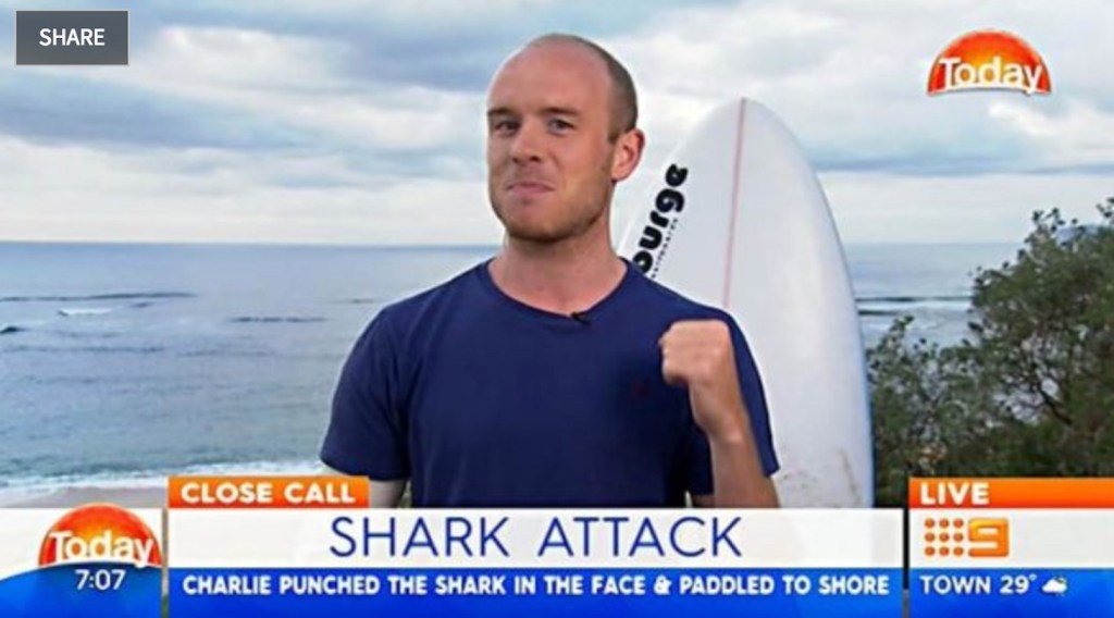 “I turned to the right and I saw a shark’s head come out of the water with its teeth and I just punched it in the face,” he told Nine News. “(I) got back on my board, shouted at my friends who were there, and then managed to catch a wave in.”