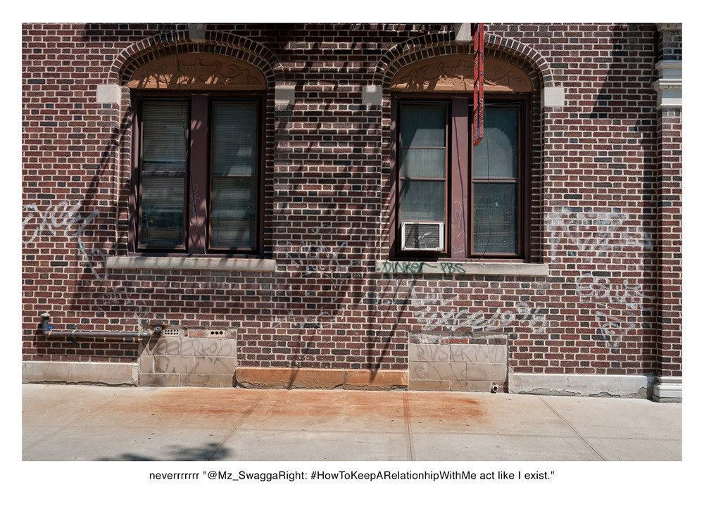 Marni: We used editorial instinct in the early work. It all falls into a number of categories—leaving work, sentimental, political, and ones referencing the media. In our latest portfolio, #HowToKeepARelationshipWithMe, we looked at trending hashtags in New York City during a week in July. “#HowToKeepARelationshipWithMe” was trending at that time and we photographed every tweet with a GPS coordinate embedded in it within a 15 mile radius of Manhattan. This eliminated the subjectivity of selecting the tweets.