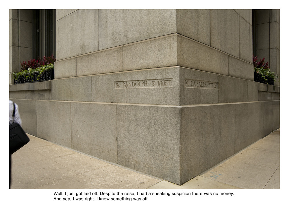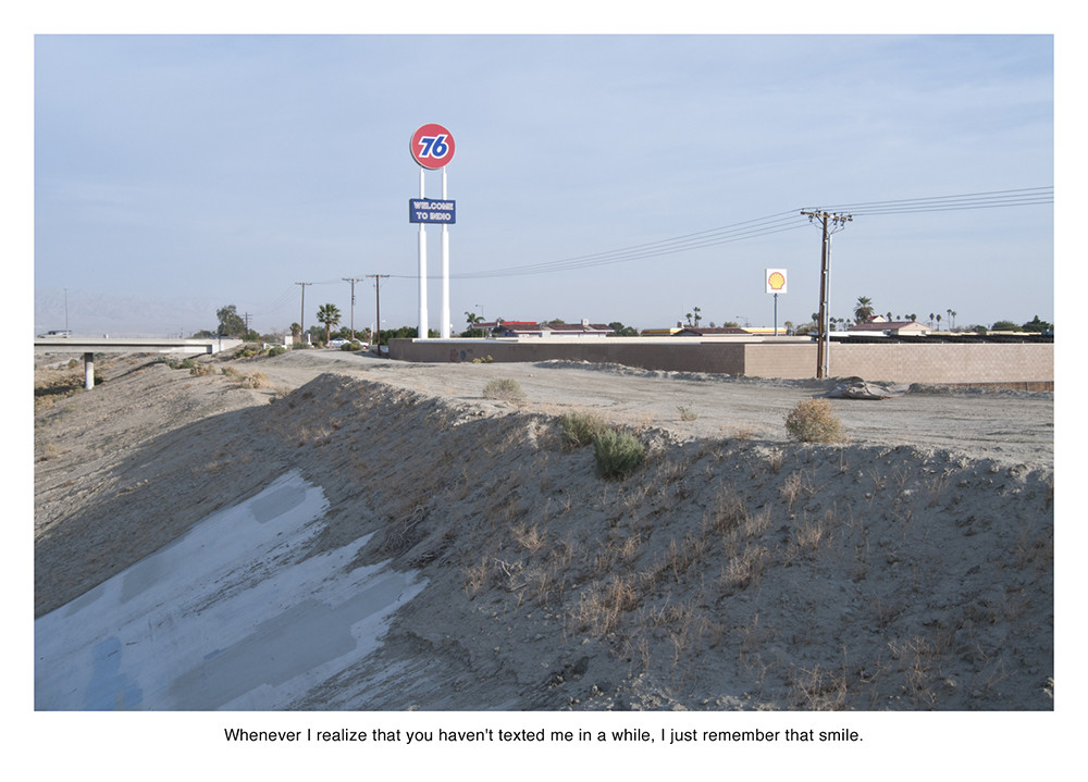Marni Shindelman: Nate and I were working on a project called Semaphore, in which we were translating text messages into semaphore flag language. We found one tweet on an old mashup app that had a gps coordinate on it near where we were shooting. We shot out first Geolocation photograph, “Sneaking Suspicion,” at that spot. At that moment, we knew right away we had started a much larger project. The technology caught up to us with the popularity of FourSquare and other locative games.
