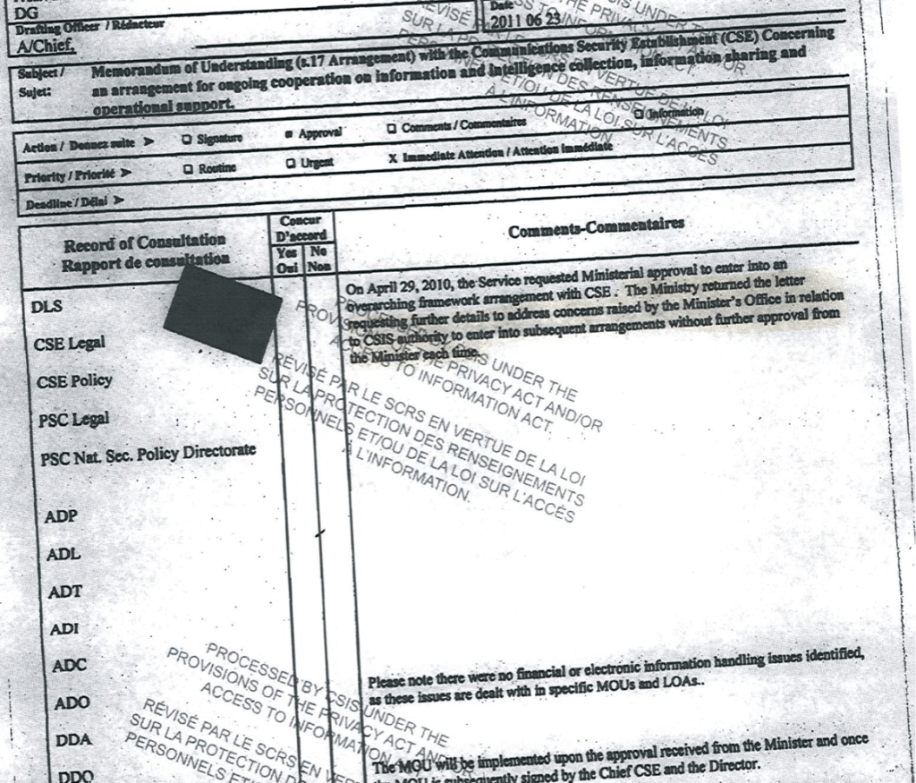 Consider this: if you look on at CSIS’ 2015 Ministerial Directions on accountability, and actually look at the section that says “Accountability”—most of it is redacted. The fact that it says nothing says a lot.