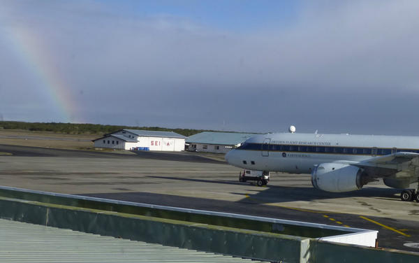 A great day for a flight — and a rainbow! — this morning at the Punta Arenas airport. Here’s the NASA DC-8. pic.twitter.com/QpM6pwuK