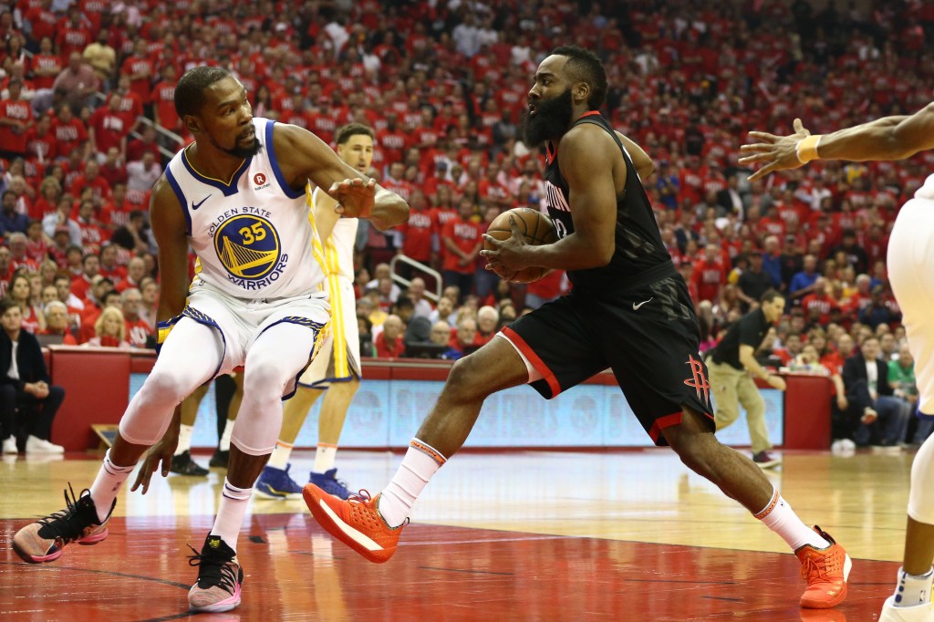 I mean, here he is, Dunking on Kevin Durant, the Warriors’ best player and a dude he once played with, the kind of guy that James Harden dunking on would, I think, normally evoke some profound reaction out of people. But the crowd just kind of sits on their seats, continuing to watch the game. No foul, no Harden flexing, nothing. He does something that, when pretty much any other player does it, is the most embarrassing shit you can do to a defender, and yet, run of play continues unabated, the crowd doesn’t lost their shit, the broadcast crew doesn’t take a second out to memorialize Durant, nothing.