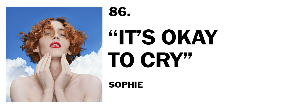 The release of this song—with its stormy production and gossamer vocals—was one of this year’s moments, a rare statement that gives as much away about SOPHIE as it leaves the listener to imagine exactly what the future will hold for her. As one commenter on YouTube summarized: “sophie finally steps out of the shadows and we’re all crying.” In any other case, this would be hyperbole, but seeing the once-faceless producer completely exposed and whisper-singing about tears makes the comment feel surprisingly poignant. —Ryan Bassil | LISTEN