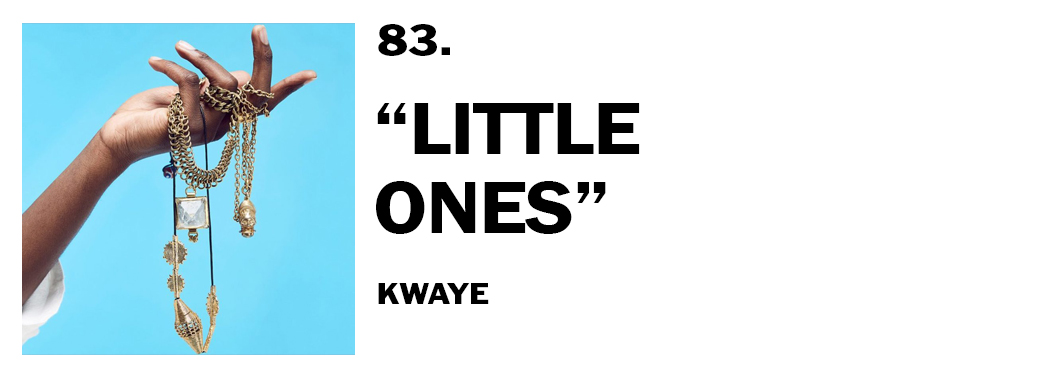 The story goes that Kwaye played his music to an Uber driver in Los Angeles who, by chance, happened to have connections to the music industry and got him a record deal almost immediately. Listening to “Little Ones,” you can understand why. Part Prince, part Sade, part 1980s synth-pop deep cut you’d desperately try to Shazam in a sweaty basement club at 4 AM, it’s the sort of mass-appeal song you’ll send to everyone you know until they tell you to stop banging about them already. This track is the result of somebody with really good taste taking all their influences, spinning them into pure, neo-funk gold and pushing them face-first into the future. —Daisy Jones | LISTEN