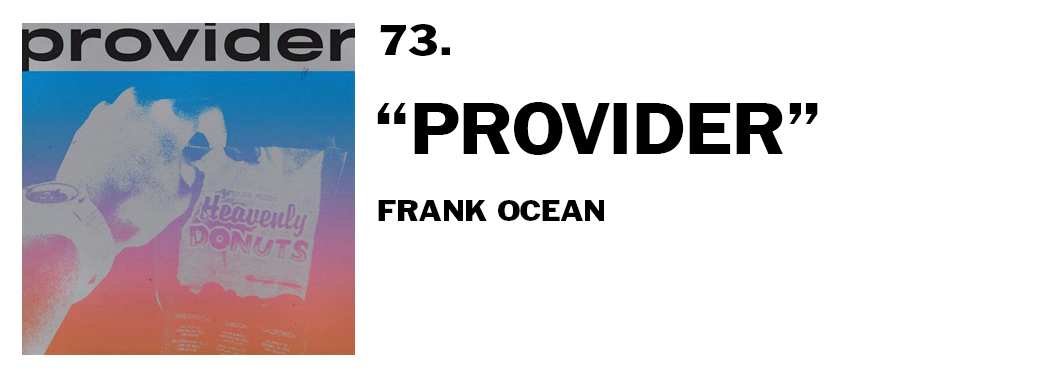 One minute, 22 seconds. That’s the exact mark in which “Provider,” one of a few lovely loosies that Frank Ocean released in 2017, goes from Good to Great—from a nice melody to something more weighty and transcendent. The beat drops and it almost sounds like someone’s leaned on the rewind button for a second, emptying into a sort of weightless beauty with silky keyboards orbiting Planet Frank. There’s an Aphex Twin joke, a few stray raps, and a beautiful octave-jumping vocal run, but the short statement that kicks off this 30-second reverie sticks in your brain throughout: “Tonight I might change my life.” Even at his most personal-sounding, Frank Ocean’s always been an adept talent at tapping into the universality of human emotion, and “Provider” is just another reminder of how true his soul speaks to the lot of us. —Larry Fitzmaurice | LISTEN