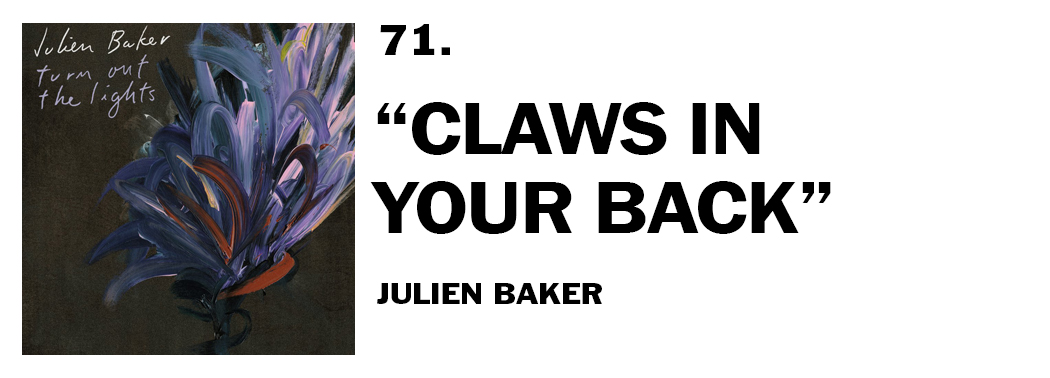 Consider someone you love dealing with depression. Consider how insidious that sickness can be but that you love them no matter what because, ultimately, this is one part of who they are. Consider patience and kindness. Julien Baker considers this on “Claws in Your Back,” an unbelievably beautiful, swelling piano ballad from Turn Out The Lights. “I think I can love the sickness you made,” Baker sings hopefully. “Claws In Your Back” lingers in the darkest moments, but remains optimistic. At the end, Baker sings profoundly of strength, of coming out to see the light and wanting to stay. —Sarah MacDonald | LISTEN