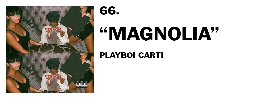 With arguably the catchiest song of the last 12 months, “Magnolia” is proof that Playboi Carti has a long career ahead of him, both as a musician and cultural icon. There was a period in the middle of the summer when it was nearly impossible to go anywhere without hearing this song—whether through car windows, DJ nights, or other commuter headphones—and it had the entire world feeling like New York City. Plus, yo, Pi’erre Bourne came out here with the best producer drop of the year. —Eric Sundermann | LISTEN