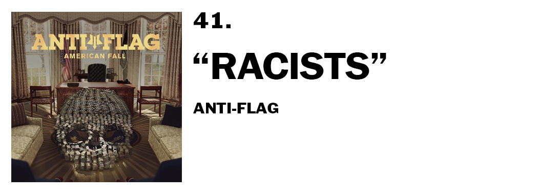 The long-running Pittsburgh punks Anti-Flag have inspired multiple generations of young punks (and metalheads) to wake the fuck up and get political. Even if the unabashedly left-wing, anti-capitalist quartet’s sound has mellowed a tad since the 90s, their message hasn’t; if anything, it’s only gotten sharper since the Bush era spawned some of their finest and most furious work. “Racists,” a lead single off their new album, American Fall, was directly inspired by the tragedy at Charlottesville, in which a white supremacist rammed a car into a crowd of peaceful protestors and murdered Heather Heyer. The catchy, poppy tune eviscerates a litany of racist tropes and Trump-era right wing talking points, its singsong chorus daring you to disagree: “Just ‘cause you don’t know you’re racist, you don’t get a pass for your ignorance!” —Kim Kelly | LISTEN