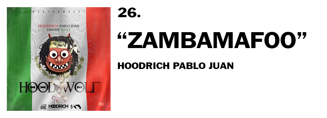 Over the course of the past year, Ronny J’s become the go-to producer for the sort of scummy, speaker-shattering trap mutation that’s stormed the charts, but this beat with Danny Wolf and DJ Spinz is almost certainly the most infectious he’s been involved with. Each note of the distortion-scoured bassline hits with enough force to Kool Aid Man through the eardrums of unsuspecting listeners, allowing room for Hoodrich Pablo Juan to slink in and—intentionally or otherwise—imply that he’s rich enough to wear clothes made out of a beloved 90s public TV lemur. It’s simultaneously goofy, upsetting, and room-shaking, which is exactly the mix of feelings that makes his work so endearing. —Colin Joyce | LISTEN