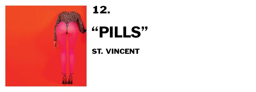 St. Vincent is factual about drug consumption on the playful sounding “Pills” from Masseduction. The song doesn’t say drugs are bad (she took sleeping pills), but they were just something needed at one point and that’s it. Metabolizing this period in her life and putting it to song, St. Vincent made a hyperactive drum machine and synth-bass pop dream. Layered beneath the upbeat sounds are darker lyrics (“anyway there’s a day / and I’ll pay it in pain”) but there may be little use in moralizing its content. The song also features Cara Delevingne, Jenny Lewis, and a Kamasi Washington’s sax comedown. It’s danceable, raucous, and a little bleak, but isn’t that just life anyway? —Sarah MacDonald | LISTEN