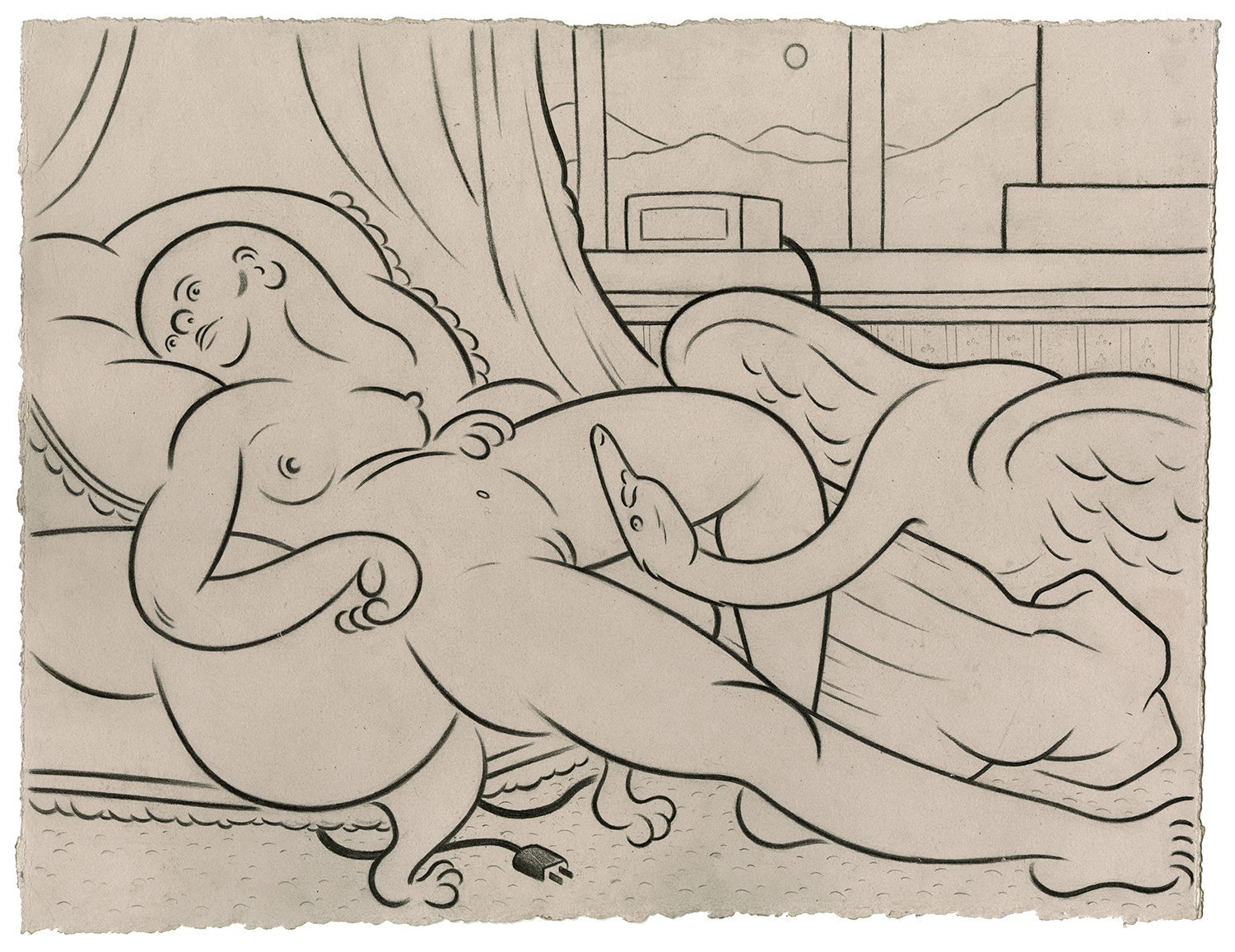 Leda (Tale As Old As Time), 2016. 10″ x 8″ Graphite and casein on rag paper
