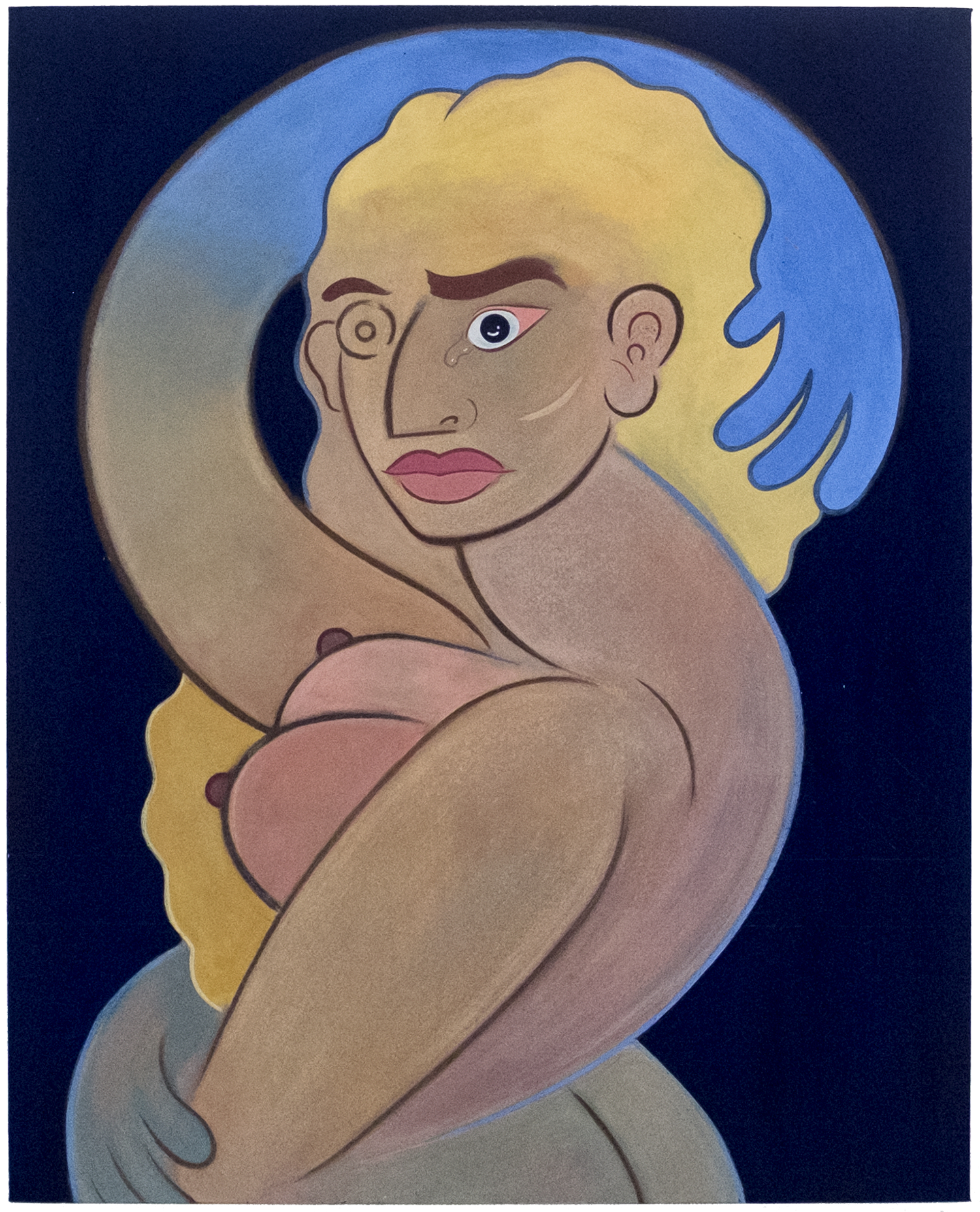 Voluptuous bodies explore the limits of physicality in the twisted works of Bay Area painter Koak. Nude and often posed in an extreme physical or emotional state, her subjects seem trapped inside bodies that don’t quite do what they want. The effect is whimsical and cartoonish as well as tense and troubling—a mix of emotions that reflect what it actually feels like to be a soul in a body.