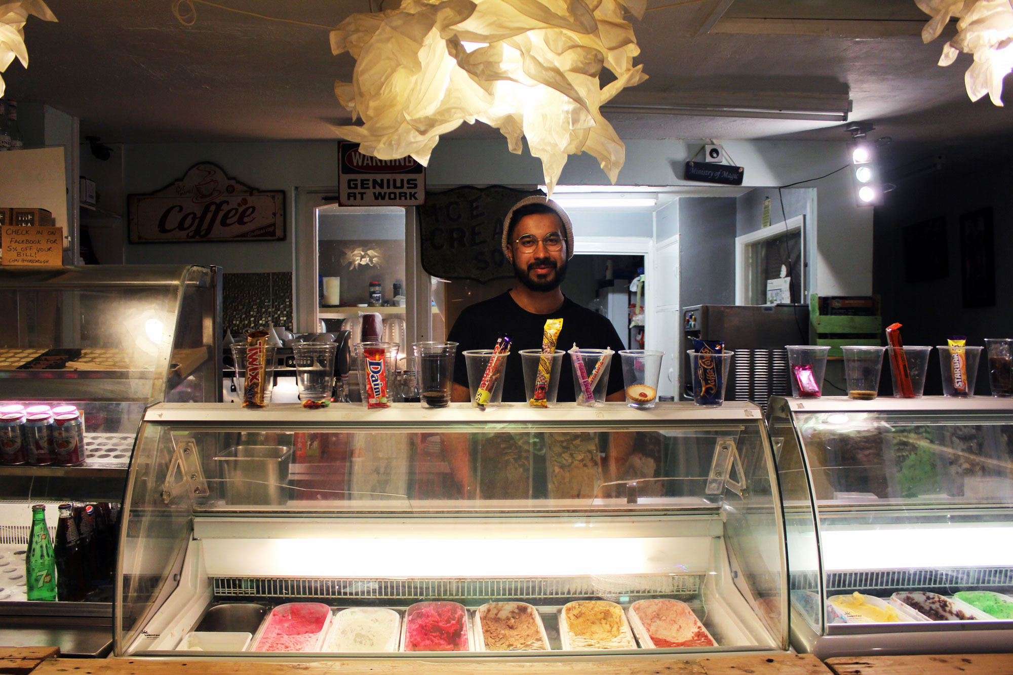 “Hi, welcome to Icestone Gelato,” he says. “What can I get for you today?”