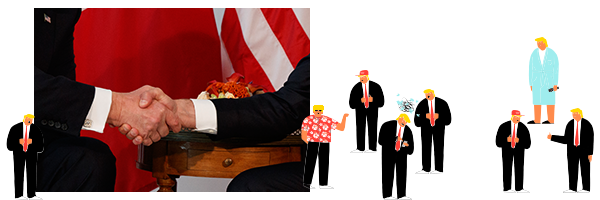 Week 25, in one sentence: Trump officially met Vladimir Putin for a one-on-one at the G-20 summit that lasted four times longer than scheduled; reiterated his demand that Mexico pay for a border wall with the U.S.; defended his daughter Ivanka for briefly taking his place at the G-20 by bashing Chelsea Clinton; repeatedly defended his eldest son Donald Trump Jr., a “high-quality person,” who took a meeting with a Russian lawyer who reportedly had dirt from the Russian government on Hillary Clinton; discussed forming an “impenetrable Cyber Security unit” with Putin, the man who ordered hackers to interfere with the U.S. election; accused fired FBI Director James Comey of leaking classified info; looked France’s first lady up and down and then told her she was in “such good shape”; walked back his border wall promise by saying it wouldn’t span the whole border; shook French President Emmanuel Macron’s hand for 29 tense seconds; and listened to Daft Punk, perhaps unwittingly.