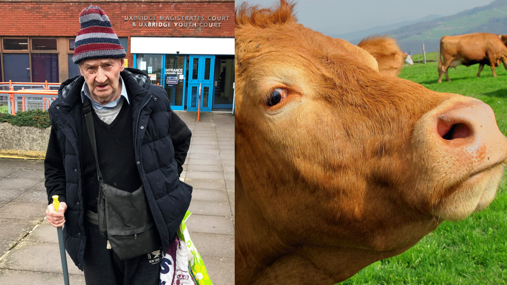 Uxbridge Magistrates Court heard that 80-year-old John Curno had twice been spotted assaulting cows at Park Lodge Farm in Uxbridge, west London.