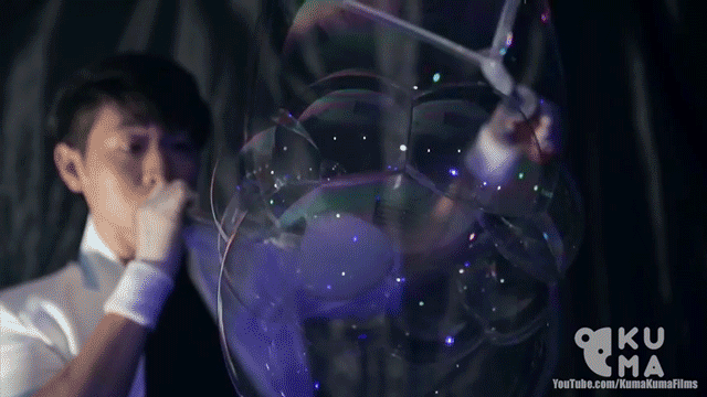 Su Chung Tai is a true bubble maestro. Captured in the video above by Utah-based Kuma Films, the Taiwanese magician-turned-“Bubble performance master” blows minds with three minutes of glow-in-the-dark bubbles, blowing bubbles inside bubbles, and even making a bubble carousel with his soapy medium. Tai, who has been perfecting his performance since 2011, holds two two bubble-related Guiness World Records, one of which is for most soap bubble domes created inside one another.