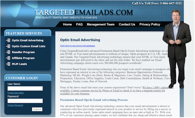 This is why places like www.targetedemailads.com, which offers a campaign of 1,000,000 emails for $500, can advertise legally with AdWords. According to Spamhaus, the US based Direct Marketing Association explicitly approves of spam. They did not respond to a request for clarification.