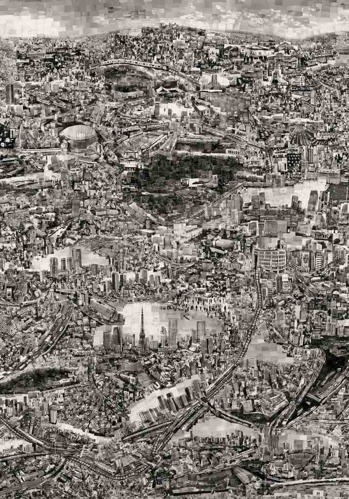 Today, his art attempts to capture this idea, presenting cities as a collage of individual places and people that come together to make a messy, but surprisingly accurate, map of a place at a specific moment in time.