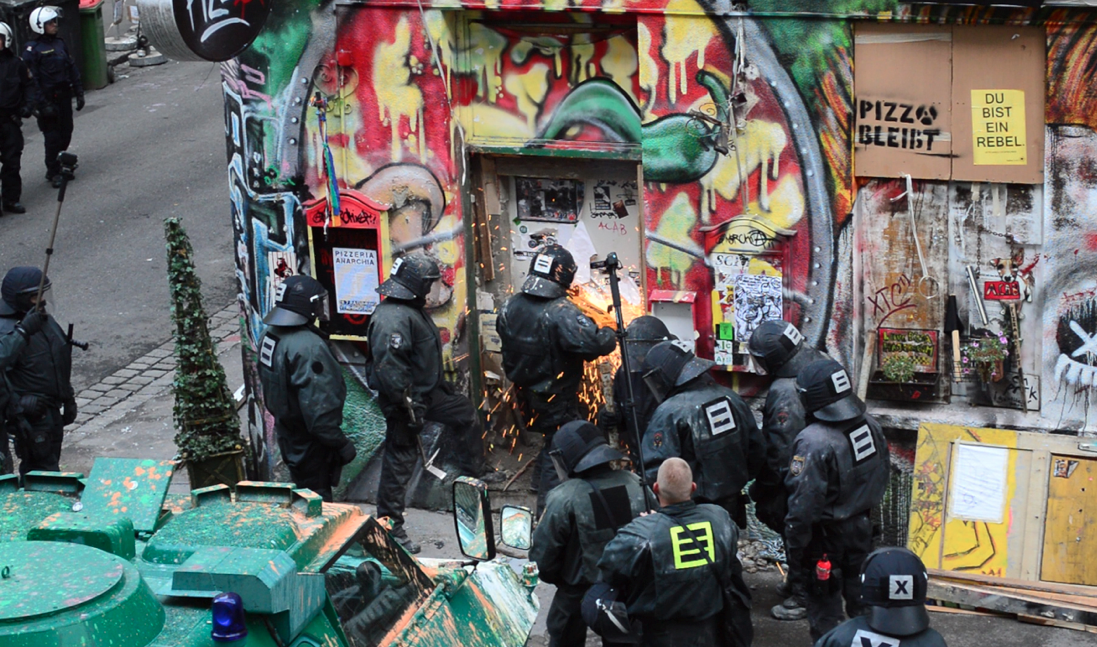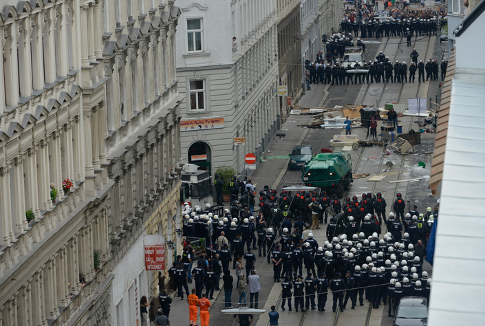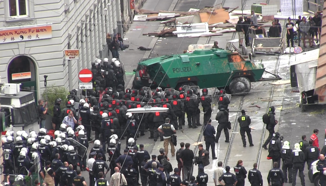 That is until yesterday, when the only actual squat in Vienna, the notorious Pizzeria Anarchia was evicted. It took 1,700 policemen, 12 hours, one tank and a water cannon to get 31 squatters to move their shit. Pizzeria Anarchia might be no more, but the story of its downfall is an embarrassment to local police and an example of shameless realtors’ tactics winning over the little man.