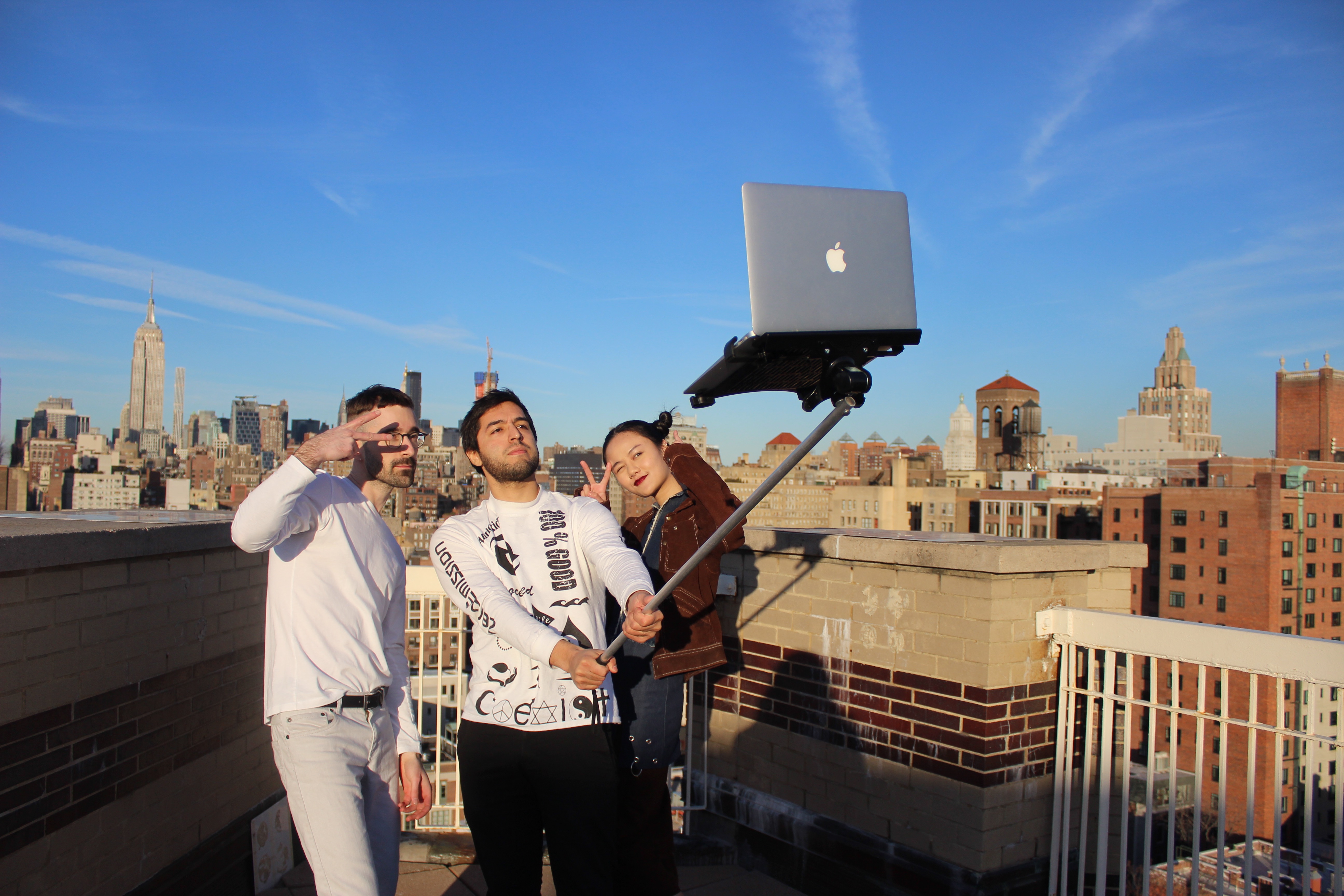 The trio met online and became close as admirers of each other’s work until last summer, when they got together and began working out of Sanabria’s studio in New York City. Within those three months together, the group came up with some of the viral collaborations featured in this week’s issue, including the Macbook Selfie Stick, Tinder VR, and the Netflix and Chill Airbnb room.