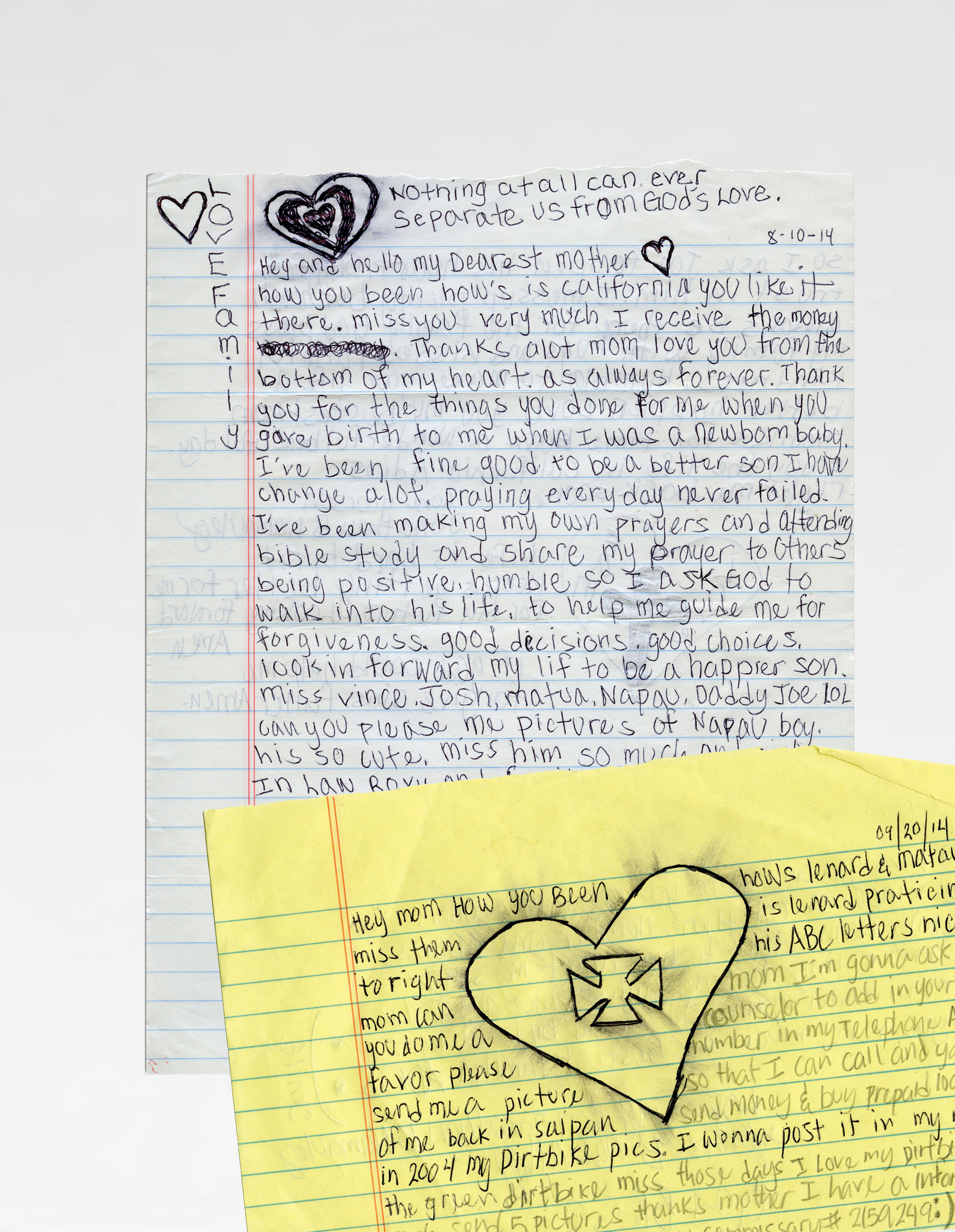 Letters Johnathan sent to his mother from Saguaro Correctional Center and the Halawa Correctional Facility in Oahu
