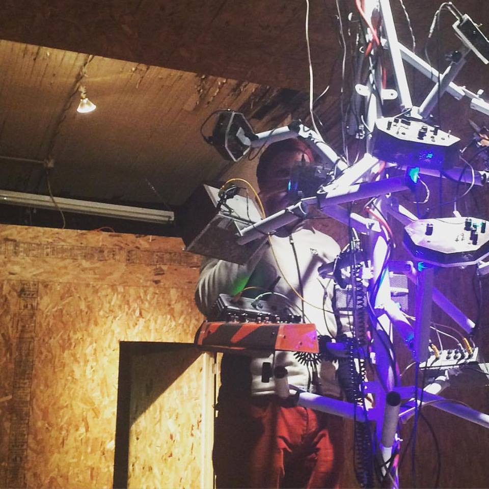 The Project Project space is about 11′ wide and 65′ long. The gallery hosts a new visual exhibition on the second Friday of every month, while simultaneously running musical performances from the local community and across the country. This can get a tricky, as sometimes performances have to coexist with the art on display. When contemporary percussionist Tatsuya Nakatani played the gallery, for example, he performed behind a fountain made of sponges by Charley Friedman, which spelled out “I LIKE MOIST THINGS.” When Austin-based drone artist Amulets came to town, he played in the middle of a pine forest installation by Heidi Wiren Bartlett. Joshua Short, with his mobile pirate radio station, Bomb Shelter Radio, set up shop in Project Project’s backyard and had to light barrel fires to keep warm while live-broadcasting online and to the neighborhood for a week.