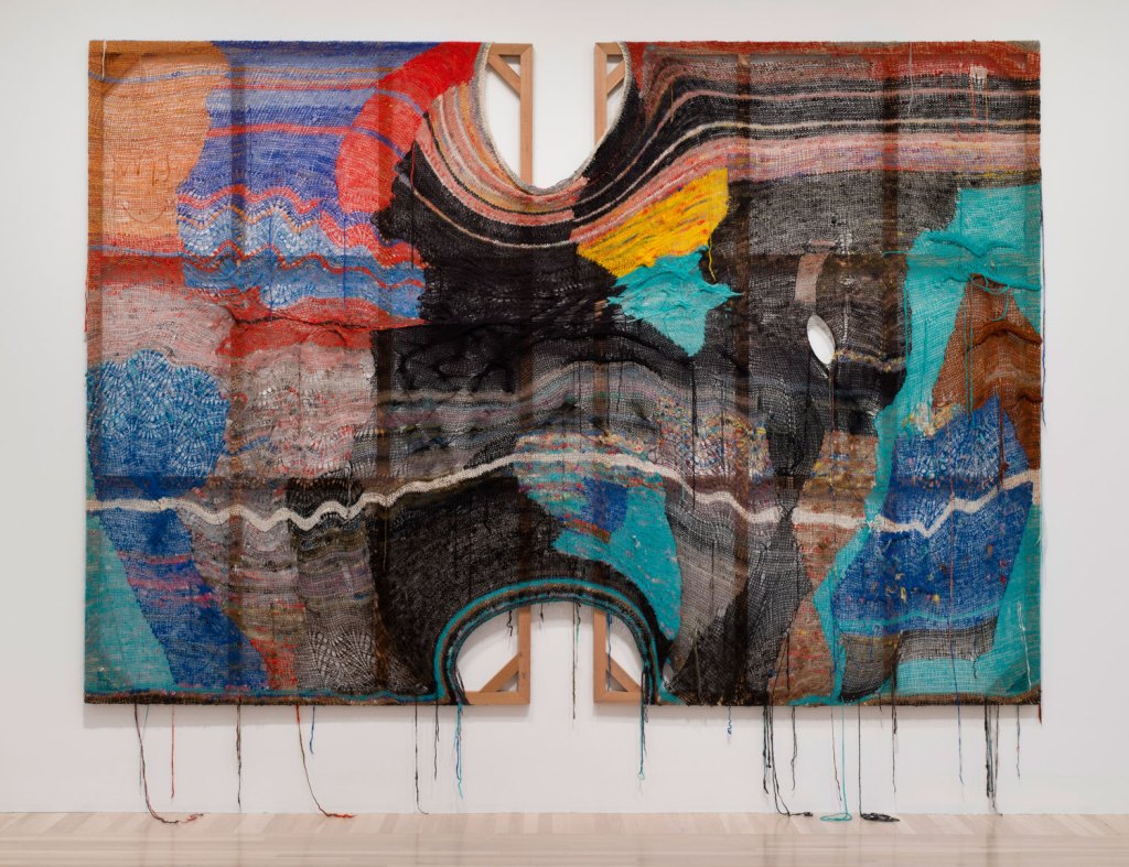 Along with Fluxus (Hansen’s grandfather was artist Al Hansen, a member of the Fluxus movement), the artist also cites many other artists who have worked with yarn and tapestries as inspirations and influences for his knitted pieces. “While Robert Rauschenberg’s Combines are often credited with breaking beyond the picture plane into the three-dimensional field of sculpture, creating a sense of continuity between 2D and 3D, the wall-hung weavings and tapestries of artists such as Magdalena Abakanowicz, Olga de Amaral, Sheila Hicks, and Ritzi and Peter Jacobi also explored similar territory using fiber,” notes Hansen. “Recognizing yarn’s capacity to denote a line, a plane, or a volume also has precedents in the work of artists such as Elsi Giauque and Fred Sandback.”