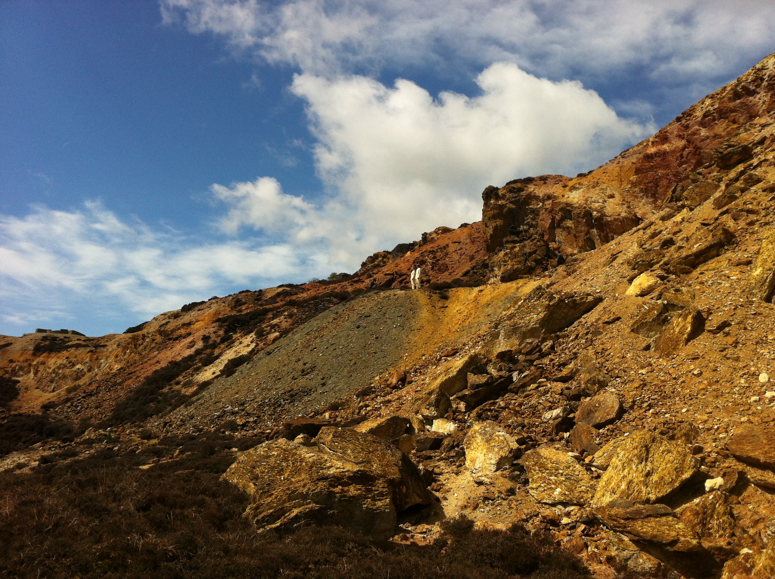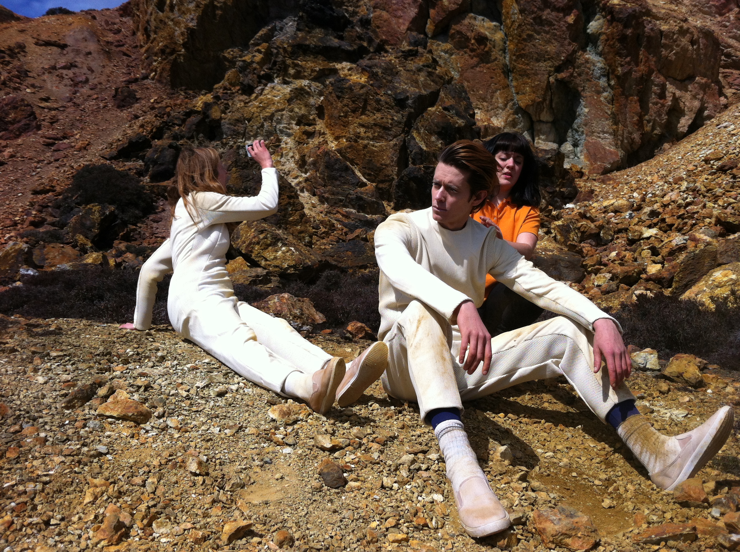 What were your visual influences for this video? Were there any particular films or music videos that you pulled from?Interstella 5555—as I mentioned—was a big inspiration. I was really excited by the songs coming to life in that way, and it was something I wanted to try and recreate. I loved the feeling of the El Guincho "Bombay" video by CANADA and how it felt like excerpts from a full-length film, which obviously influenced the structure of NA, together with the cinematic feeling of Shabazz Palaces' videos by Kahlil Josef. Other than that, it's quite obviously a tour round the houses of my favorite sci-fi! Stalker, Solaris, Close Encounters, 2001, all that kind of stuff.Tell us about the shoot itself. It was set in a quarry in Wales right? How did you find this place and what was it like directing the two lead actors?Yes, the main body of the video is filmed in two different quarries on Anglesey, Wales. That location really saved the project! I owe them to Isabella Lopez-Smith, who handmade the amazing costumes and masks. She actually grew up near there and told me about these crazy abandoned mines that were used by the BBC to film stuff like Doctor Who back in the day (I also have a feeling that the video for "Tonto" by Battles was filmed in the slate quarry).We were incredibly lucky with the weather—Wales is not known for being clear and sunny. To tell the truth, it was the most tired I think I've ever been. I didn't realize that there were cats at the house, and I'm allergic, so I didn't really sleep. I'd get about an hour and then just go make sandwiches for everyone or go for a walk in the fields at 5 AM and try to breath. It was a complete uncertainty and unknown going up there, but the locations are amazing and between me, Leo (1st AD) and Robert (DP) we worked out how to approach the shots I needed.The two leads, Davo and Marene, were amazing. Davo is an old friend and sometime actor (among many other skills), and Marene is actually a professional actress I got in touch with through him. Both lovely. Davo actually cut his hands pretty badly after I got him to repeatedly scramble down the slope at the beginning of the video, the ground was very uneven and he's just wearing plimsolls [flimsy sneakers]. I felt pretty bad about that.It sounds silly, but shooting the part where Marene "dies" was actually genuinely upsetting. I'd never been involved in anything like that before and it was pretty intense for a first timer. In general, it was a bloody brilliant experience and something I'll never forget.Discussing the death scene…
