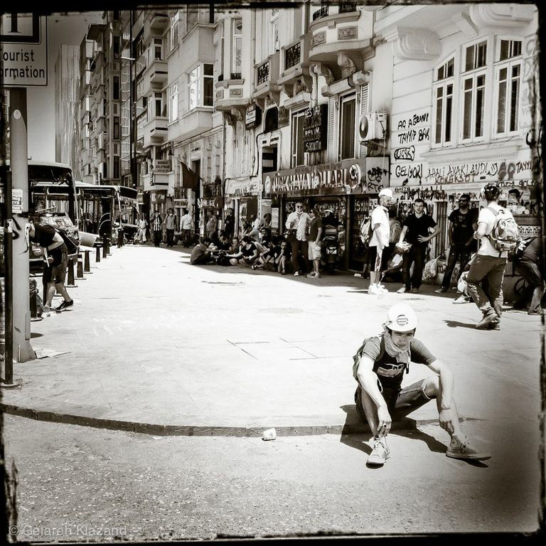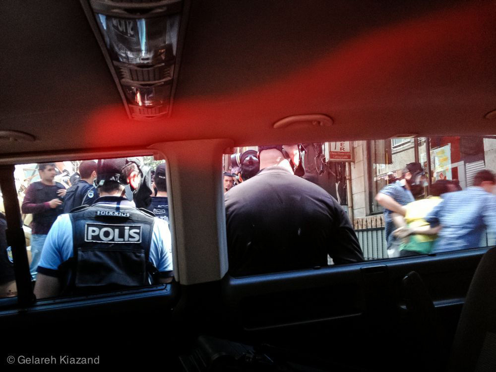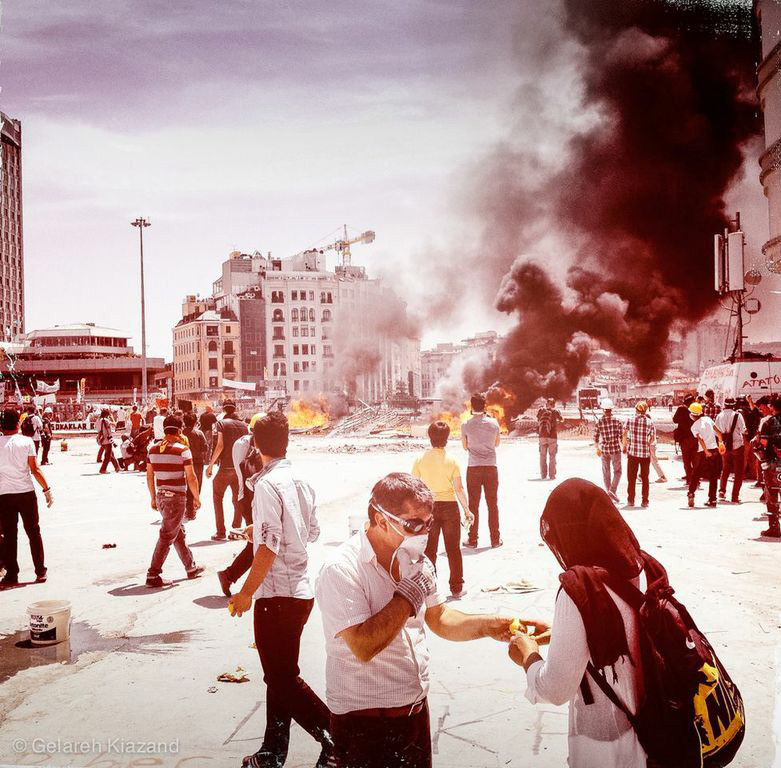 Protesters assisted civilians between retaliating with rocks and slingshots. They would hold their hands and run them to medic stations nearby. At every street, shopkeepers took people in, closing their shutters until the street was clear of police and gas. Free water, food, lemon juice, and various homemade tonics for tear-gassed eyes were passed around for anyone in need. I had never experienced this kind of support and unification amid such chaos. I believe this was the heart that fueled the protests Istanbul protests motivating masses to return back to Taksim even though they had been gassed, soaked with both water and another chemical spray that irritated the skin. Kids refused to sit back and would approach the police asking them questions while watching a door being broken into, chairs being thrown out as young girls were arrested one by one, screaming for their release. People later that day began selling various masks and goggles.