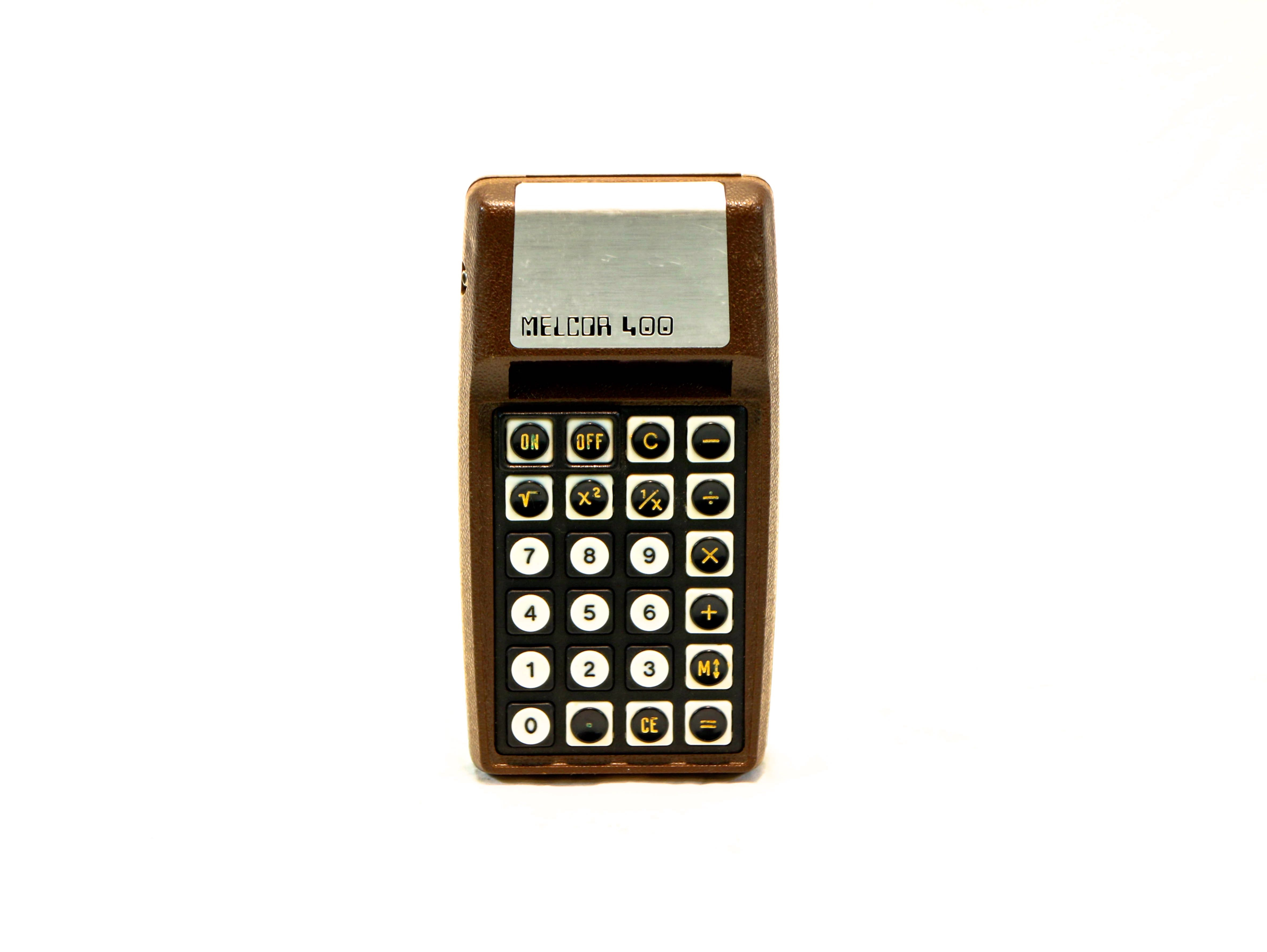 Studying electrical engineering in college, and working as a computer security analyst for the last three decades, he was mostly interested in holding onto devices like these and their workable parts as a way to fix newer, broken ones, often fusing pieces together like a mad scientist. The rest he kept because he loved the way they looked: the hilariously large 9-track tape, the boxy brown Melcor 400 calculator, the steampunk-ish 35mm Kodak camera.