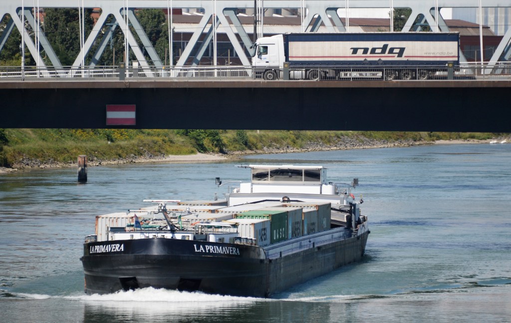 Cover image: The container barge La Primavera passes Kehl, Germany, 22 August 2017. (Patrick Seeger/picture-alliance/dpa/AP Images)