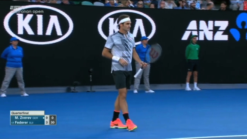 At his most enjoyable, which is not always quite the same thing as his best, Roger Federer still plays tennis as if being directed by an elaborate prompt. Breeze through an Australian Open quarterfinal while utilizing the following shots: a backpedaling inside-out forehand, a knee-buckling lob, and a return-of-service backhand that may as well be directed by hydraulic tunnel for how neatly it whizzes into the lone section of uncovered court. All of this was present in Federer’s three-set dismantling of Mischa Zverev Monday night in Melbourne, which was Tuesday morning in the United States. Federer played the hits.