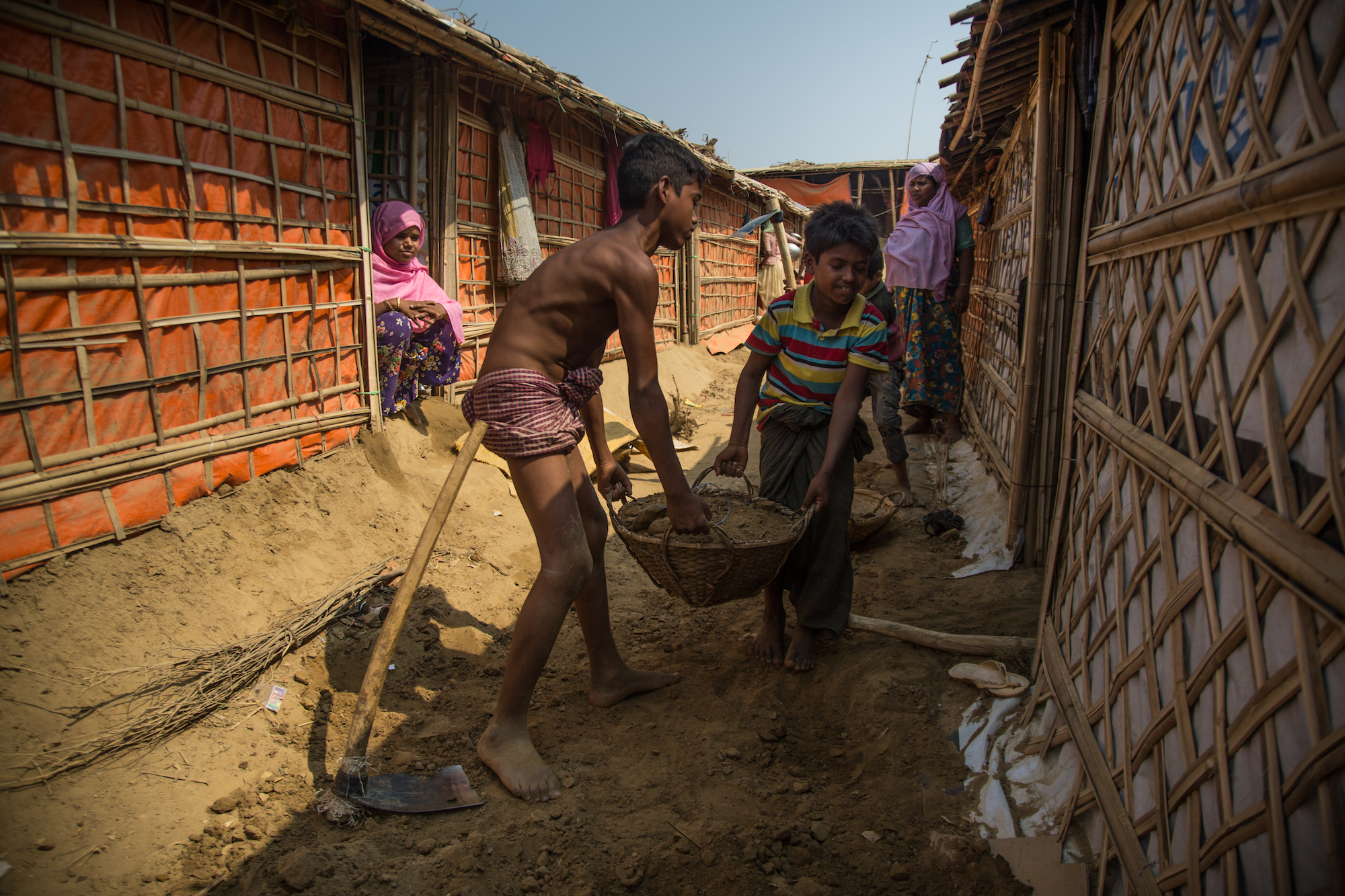 In order to reach the rari camp from the center of the larger Balukhali refugee camp, itself an hour’s drive from Bangladesh’s southern city of Cox’s Bazaar, you must climb twenty minutes up through dirt hills. But for the Rohingya women and children who live there, the relative distance from the crowded central camp is a blessing. For them, the mini camp is a sanctuary of sorts. No men are allowed inside.