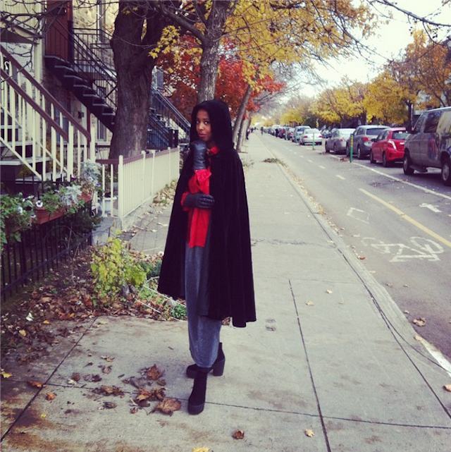 "My cape is my best friend. It can be awesome when there's a throw and go type show, or if I'm feeling sick or lazy. Stick on over my pjs and all is alright. My cape also functions as a blankey in the van. I have, however, learned it is not a practical item to wear on the Irish sea."