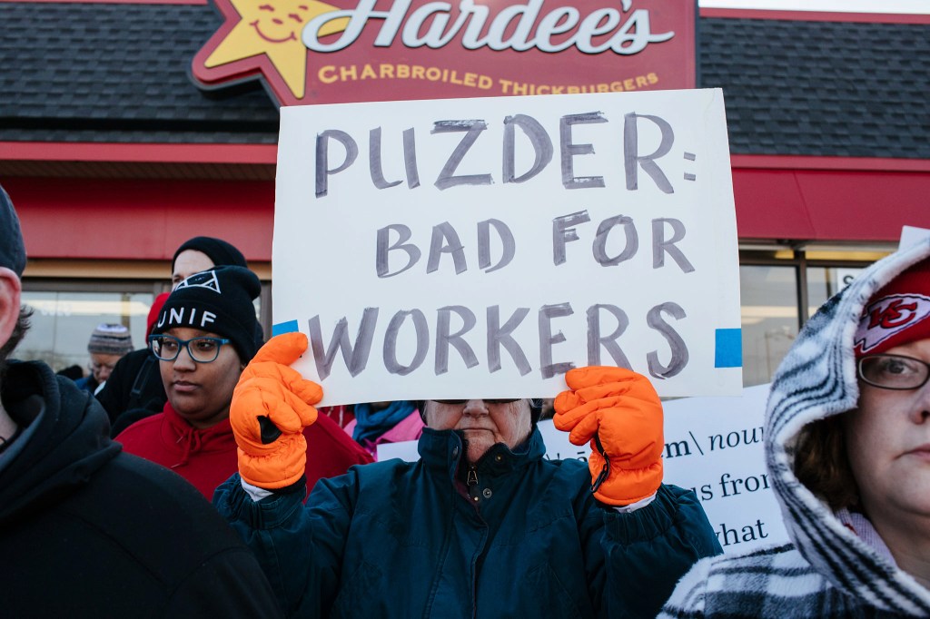 Following the delay of the Labor Secretary nominee Andrew Puzder’s confirmation hearing—which was originally scheduled to take place on January 12 and is now tentatively scheduled for the 17th, but will likely occur in February—protests and rallies against the polarizing fast food mogul erupted nationwide. Members of the Fight for $15 movement and their supporters gathered throughout the country, most often in front of Carl’s Jr and Hardee’s restaurants, to voice their opposition to Puzder’s likely appointment to the position of Labor Secretary.