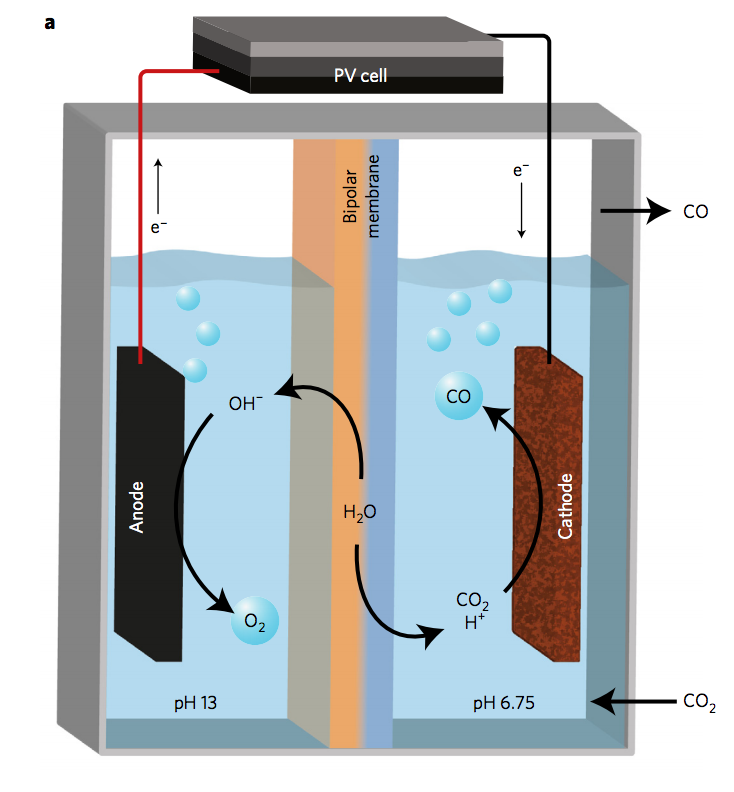 Even with the help of catalysts, splitting CO2 is still an “uphill” process. It takes energy to accomplish. Here, that energy is supplied via solar cells. So, none of this is magic—we still owe the process an energy input, but solar energy plus the careful tweaking described above gives us something that looks like a relatively free transaction.